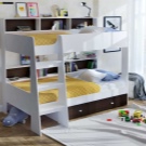 - Hochbett. Alle Kinder mögen Etagenbetten, und wenn das Kind allein ist, ist das kein Grund, ihm solches Vergnügen zu versagen. Ein Bett eines solchen Bettes ist immer mit starken Holzseiten ausgestattet, die vor Stürzen schützen, und bei einigen Modellen ist es sogar möglich, die Höhe einzustellen. Darüber hinaus spart diese Option durch den eingebauten Schreibtisch, den Schrank oder alles zusammen Platz.