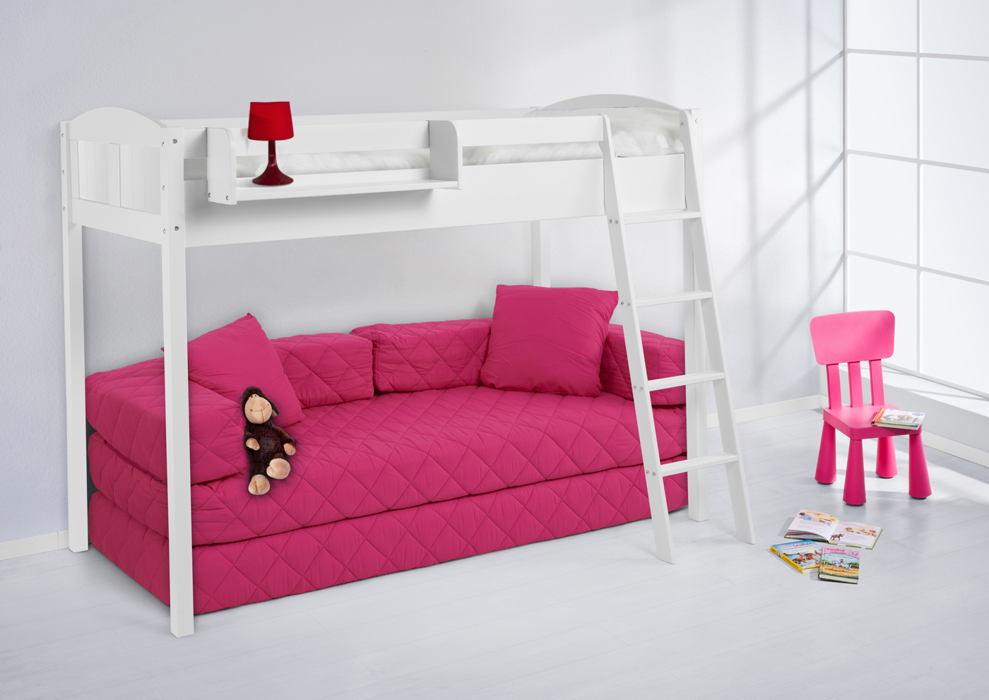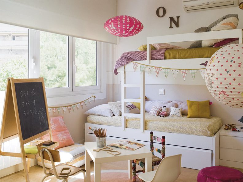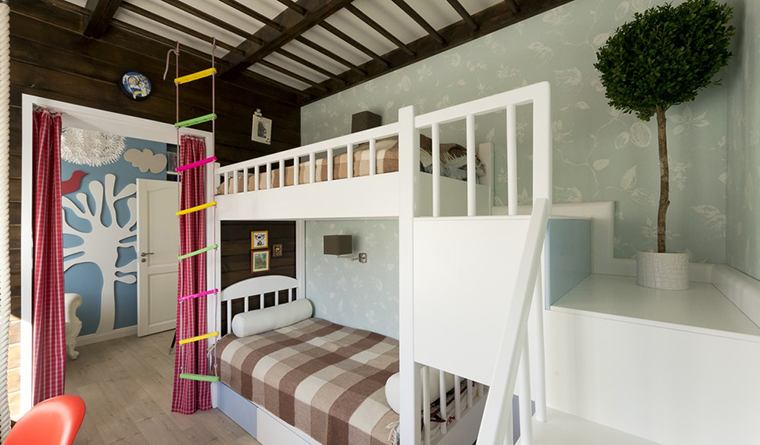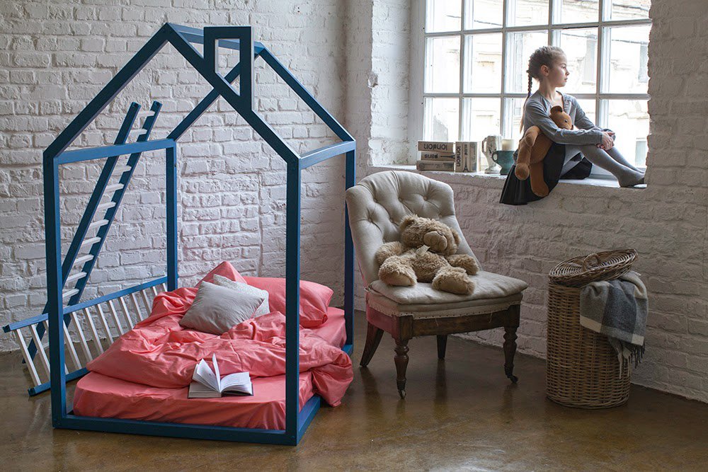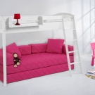 - Natürlicher Licht Schatten. Dieses Bett wird in einem hellen, geräumigen Kinderzimmer gut aussehen, und es ist auch perfekt für jene Kinder, die sich noch nicht für die Farbe entschieden haben, weil es einfach zu streichen ist.