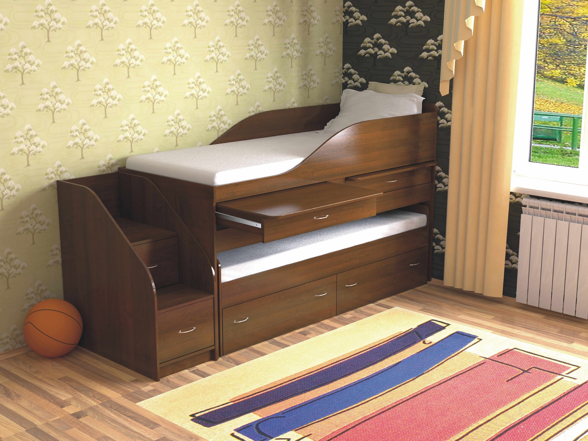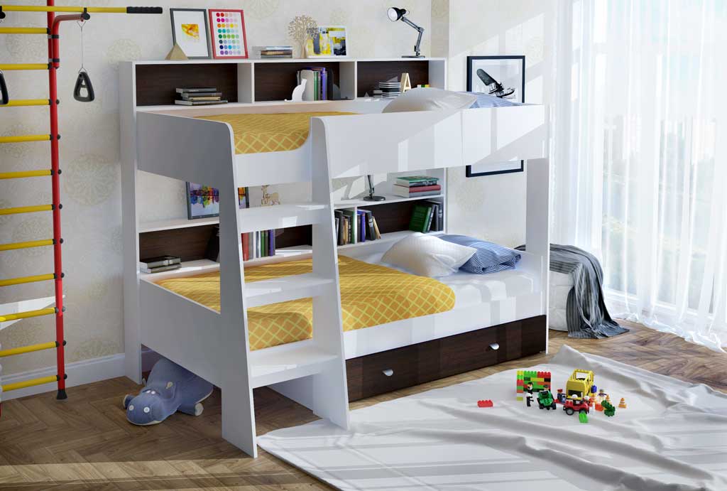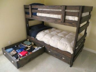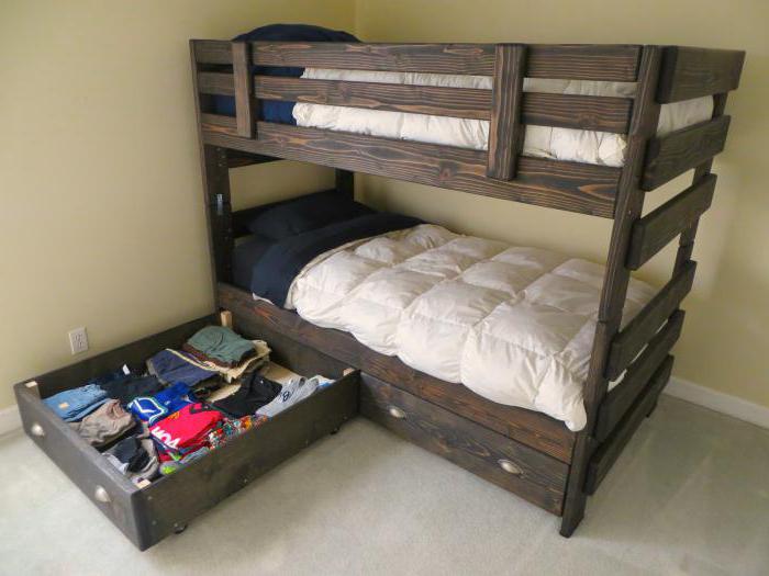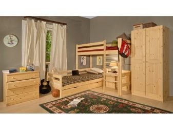- Duplexbett. Wenn zwei Kinder im Haus sind, wäre die beste Lösung, ein Etagenbett aus Naturholz zu kaufen. Es ist kompakt, zuverlässig, hat oft eingebaute Schubladen, Schränke und viele andere verschiedene Zubehörteile, und es kann viel billiger als der Kauf des gesamten Headsets separat kosten.