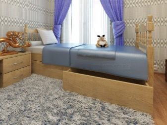- Mit Schubladen. Diese Option ist ein großer Erfolg, und das ist verständlich. Boxen sparen deutlich Platz, besonders wenn es um einen kleinen Raum geht, es ist einfach, Spielzeug oder Kleidung dort zu verstauen, ohne zusätzlichen Platz einzunehmen.
