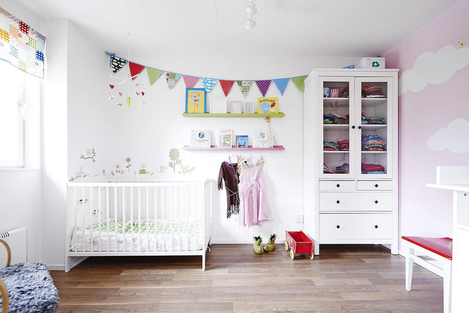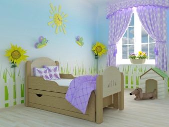 - Wenn das Bett im fertigen Raum gekauft wird, müssen Sie sich zunächst auf die Gestaltung des Raumes konzentrieren. Für den Fall, dass die Möbel in die noch nicht fertige Gärtnerei gekauft werden, ist es besser, sofort einen einzigen Stil zu entwickeln, unter dem das Bett bereits gekauft wird.