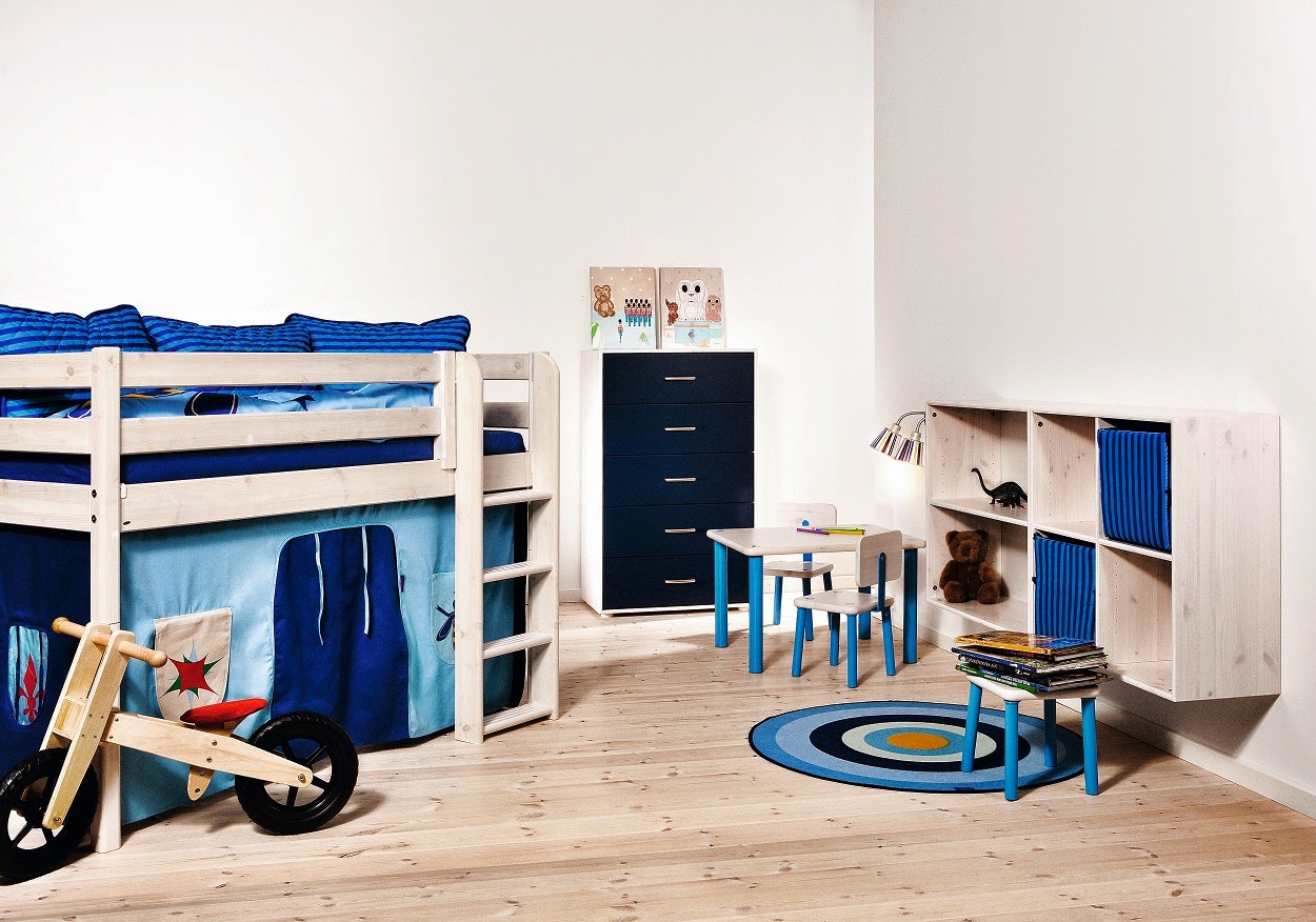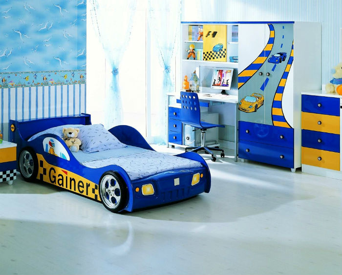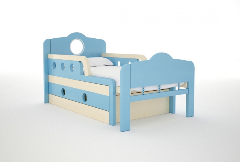 - Blau Diese Farbe verleiht dem Kind eine Atmosphäre der Ruhe. Ein Bett in diesem Farbton eignet sich gut für ein Zimmer im nautischen Stil.