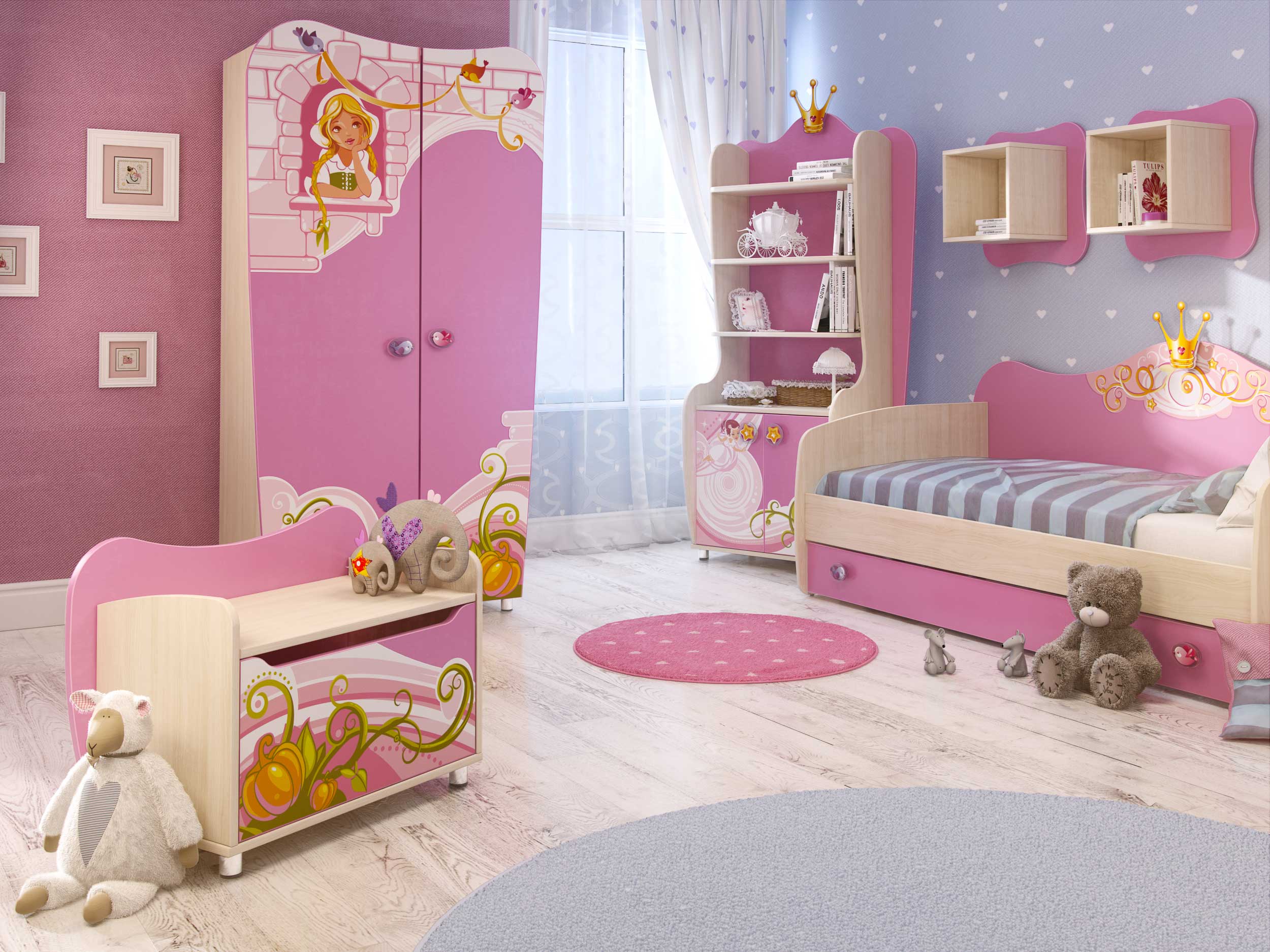 - Gefärbt. Farbmodelle, die schon als Klassiker gelten: Pink für Mädchen, Blau für Jungen passen gut ins Interieur und geben Kindern die Möglichkeit, sich wie wunderschöne Prinzessinnen und mutige Segler zu fühlen.