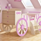 Sie sollten auf das Bett achten. Es sollte auch dem ausgewählten Design entsprechen. Sie können auf das Modell, dessen Design in Form einer Kutsche gemacht ist, achten. Dieses Bett passt in die Atmosphäre des Mittelalters und wird Ihr Kind begeistern.