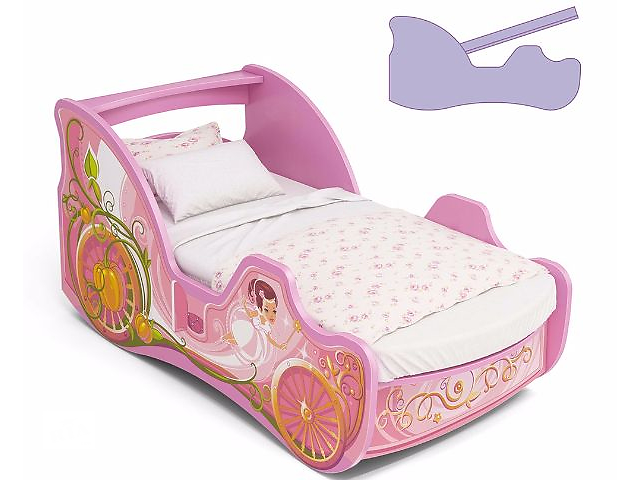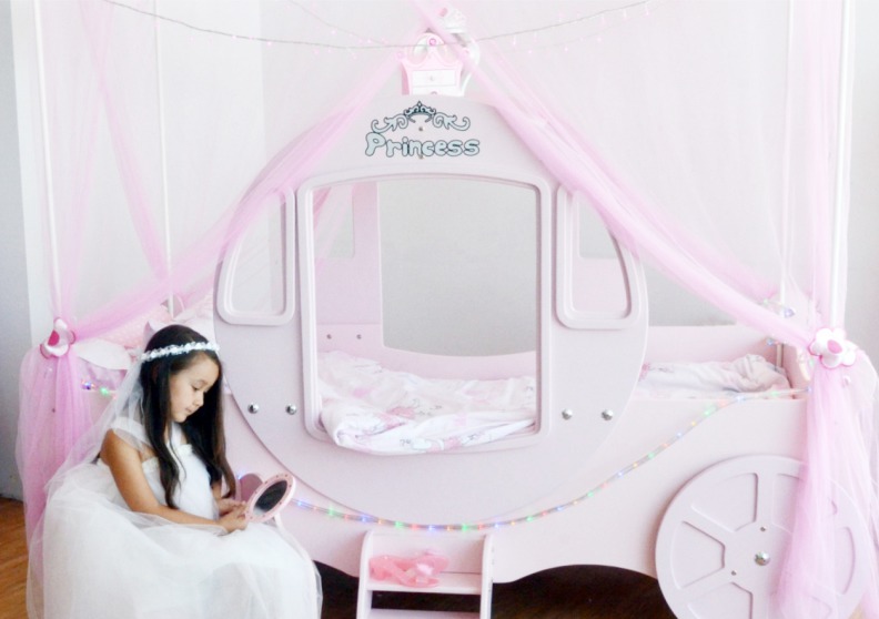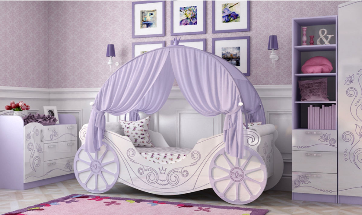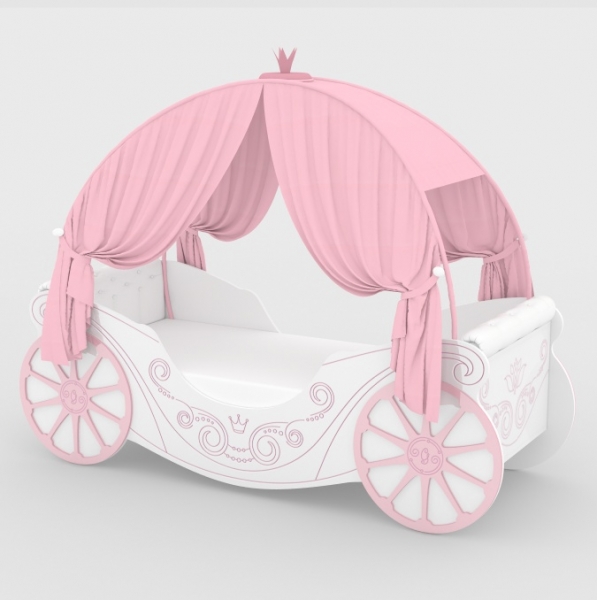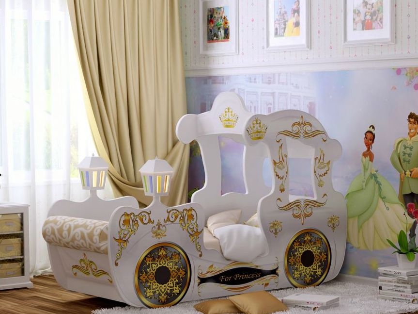 Damit das Mädchen wirklich fühlt, dass sie in einer echten Kutsche ist und ihr Zimmer ihr eigenes Königreich ist, können Sie zusätzliche Funktionen zur Standardausstattung des Bettes erwerben, zum Beispiel: