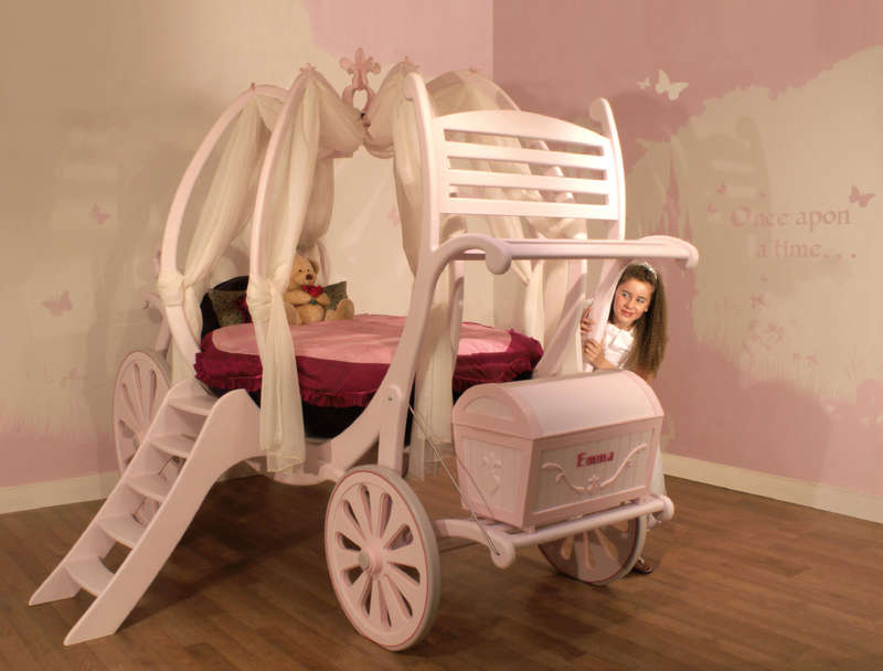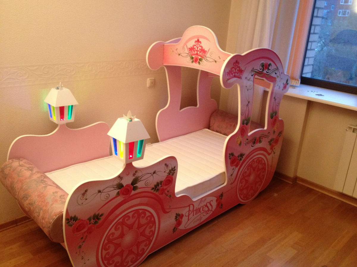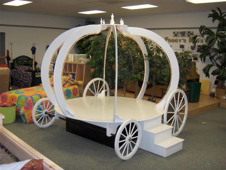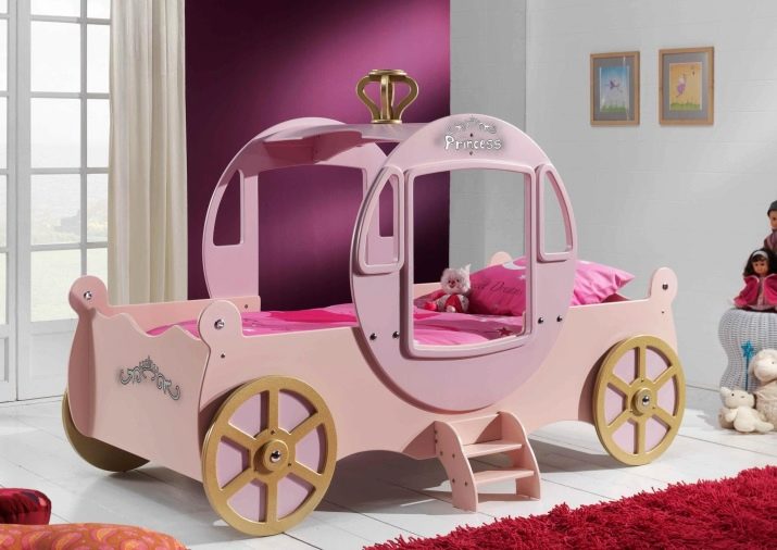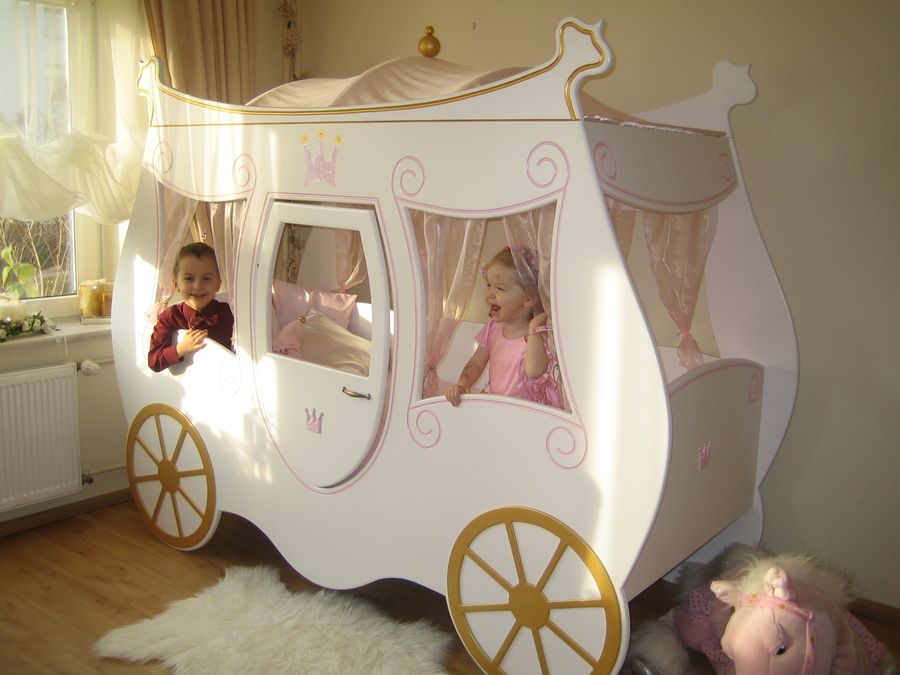 - Mit einem Wagenkoppler - in diesem Fall wird die Matratze des Bettes wie eine echte Kutsche gepolstert. In dieser Art von Bett, praktisch, wird sich nicht von der echten Kutsche unterscheiden. Ihr Kind wird sich wie eine echte Prinzessin fühlen, die auf den Punkt kommt.