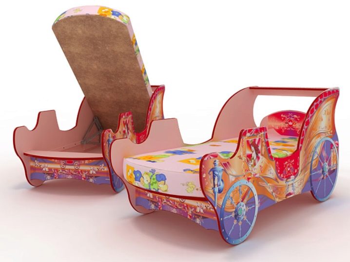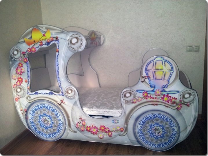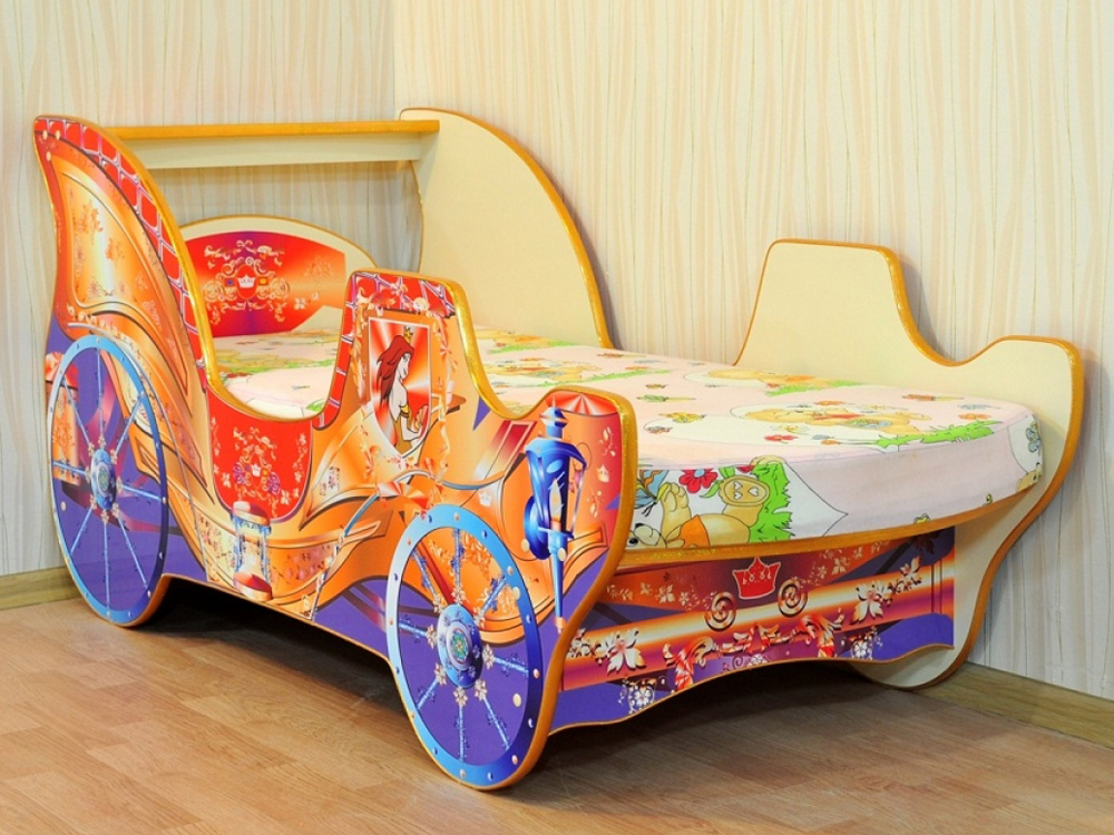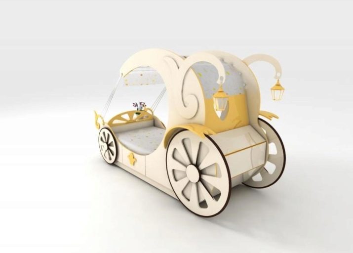 Lassen Sie uns über die Eigenschaften des Bettes, in Form eines Wagens, sowie über seine Vorteile sprechen: