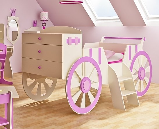 - Durch die Wahl eines Bettwagens für die Gesamtgestaltung des Zimmers im mittelalterlichen Stil bereiten Sie übrigens Ihre Tochter auf einen eigenständigen Lebensstil vor. Die familiäre Atmosphäre des Raumes, die alle miteinander verbunden sind, wird das Kind mit Ruhe und Sicherheit inspirieren. Folglich wird seine Abhängigkeit von der ständigen Anwesenheit der Eltern abnehmen,