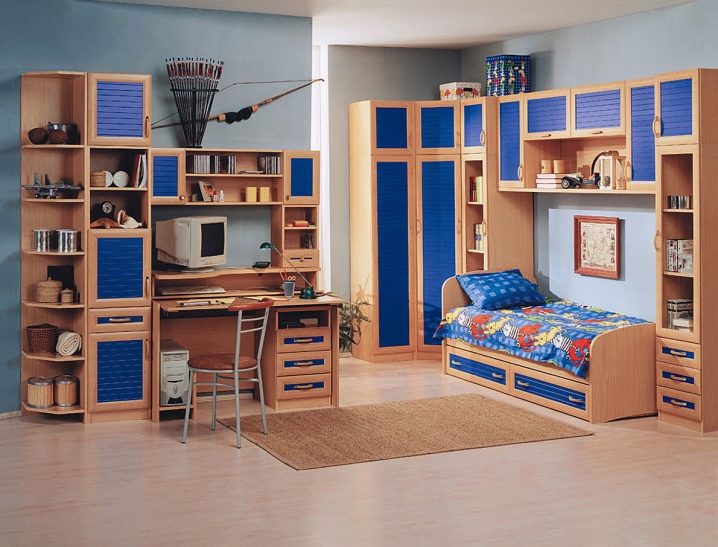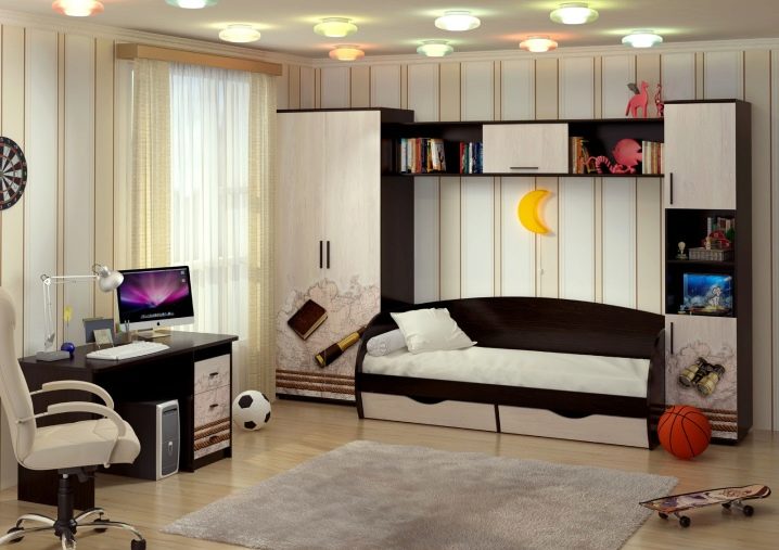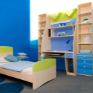 Für Jungen wählen Sie Betten von einem dunklen Baum oder farbige Modelle von blauen, blauen, braunen, grauen Farben.