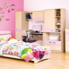 Betten aus MDF und Spanplatten können verschiedene Formen und Designs haben: einen zusätzlichen Tisch oder Schrank, eine Kommode zusätzlich zum Bett. Solche Möbelsets werden für ein kleines Kinderzimmer nützlich sein, wo es wichtig ist, jeden Zentimeter Platz sinnvoll zu nutzen.