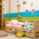 Einzelbetten für Kinder sind in folgende Typen unterteilt: klassische Modelle auf 4 Beinen, mit einem Hebemechanismus, mit einer Schublade.