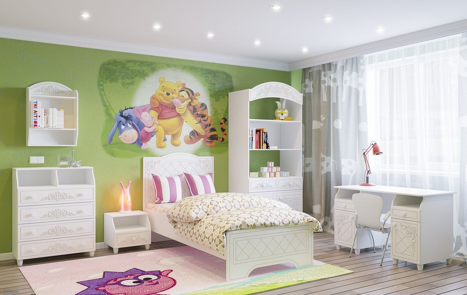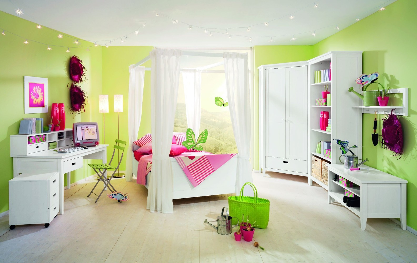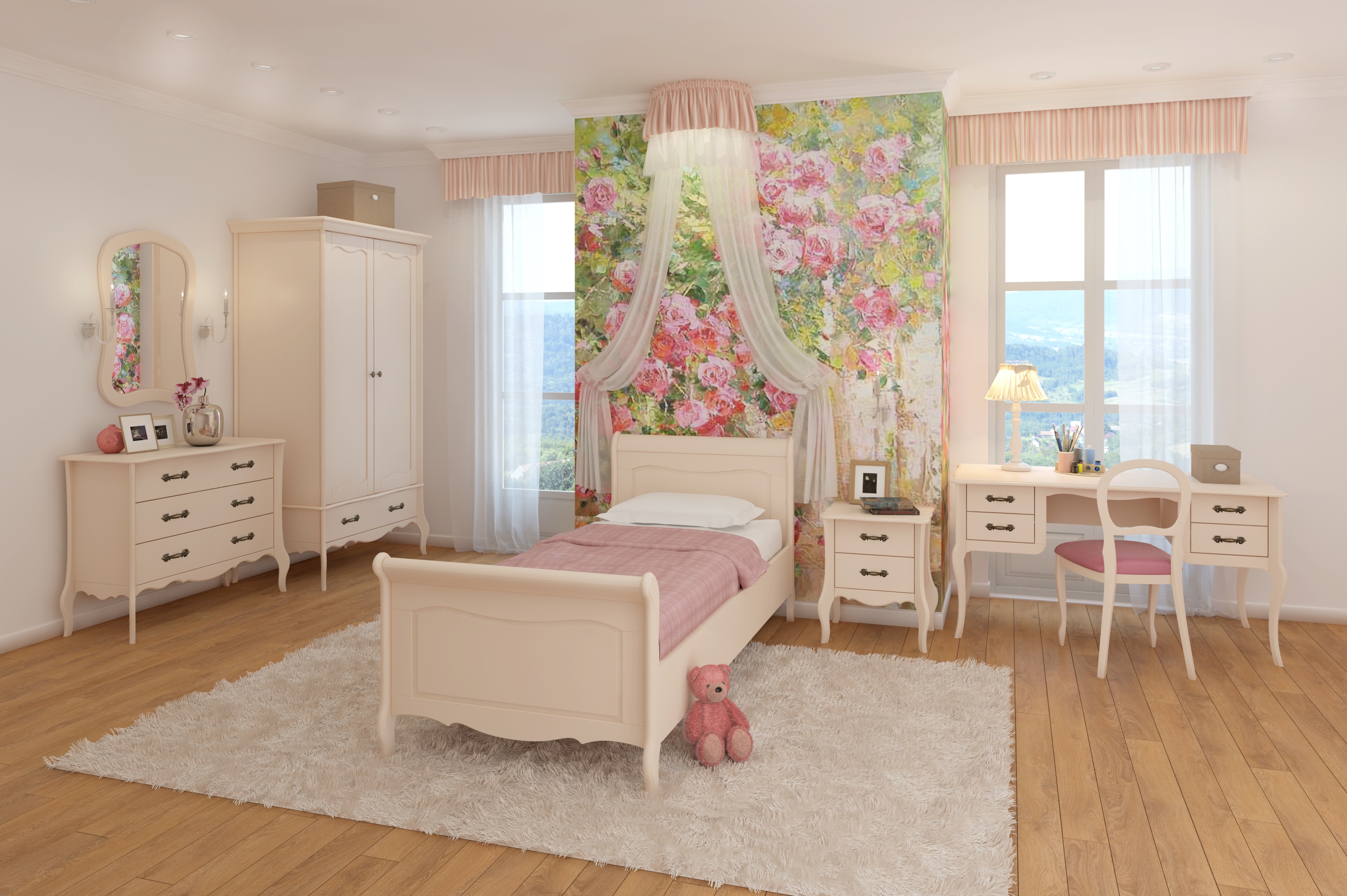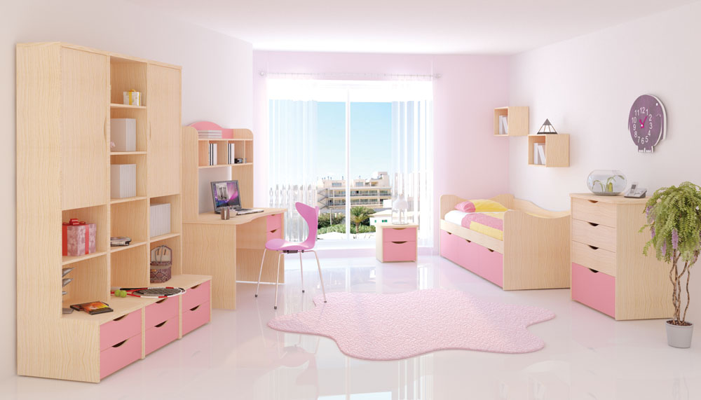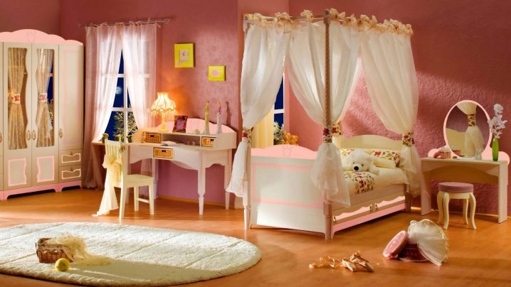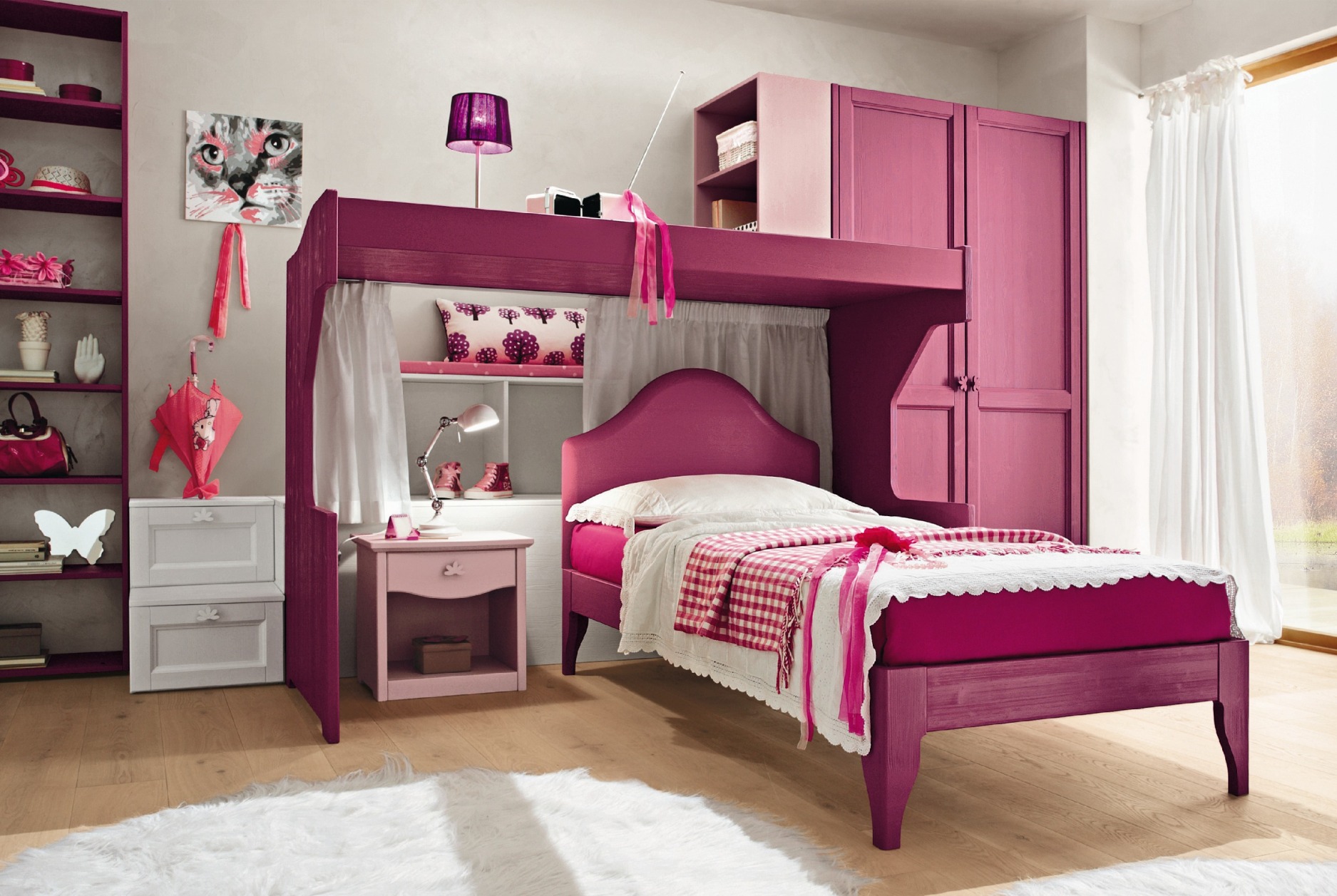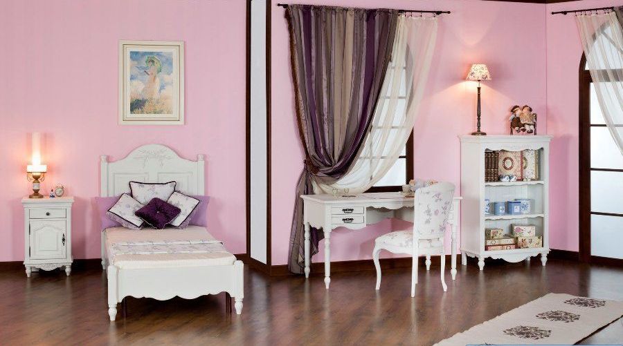 Für Mädchen passen die Betten aus Naturholz oder Metall weißer Farbe: Sie sind praktisch in der Pflege und prägnant im Design.
