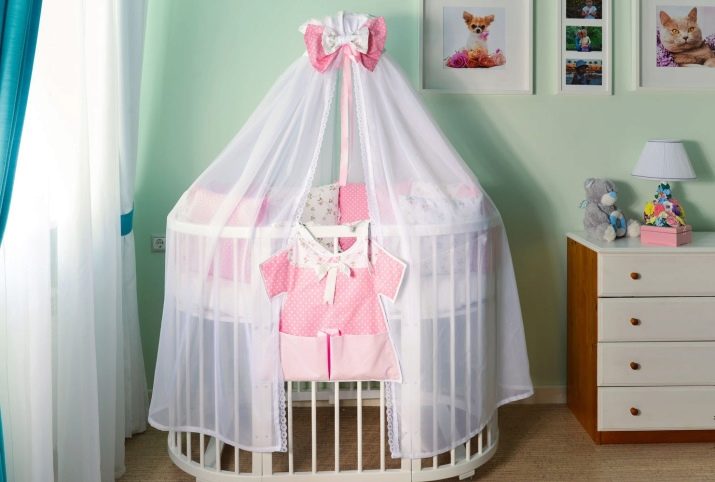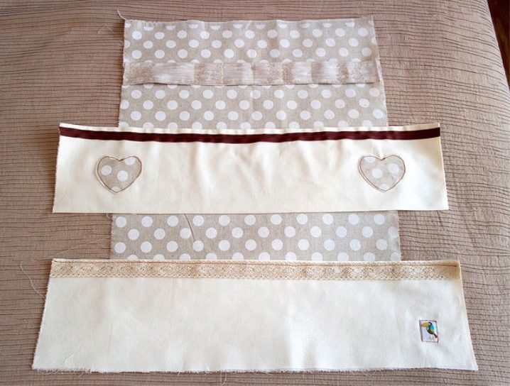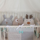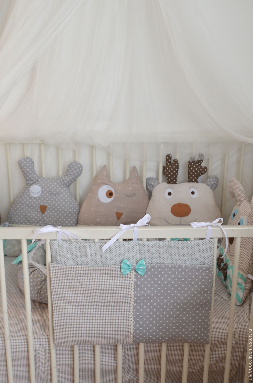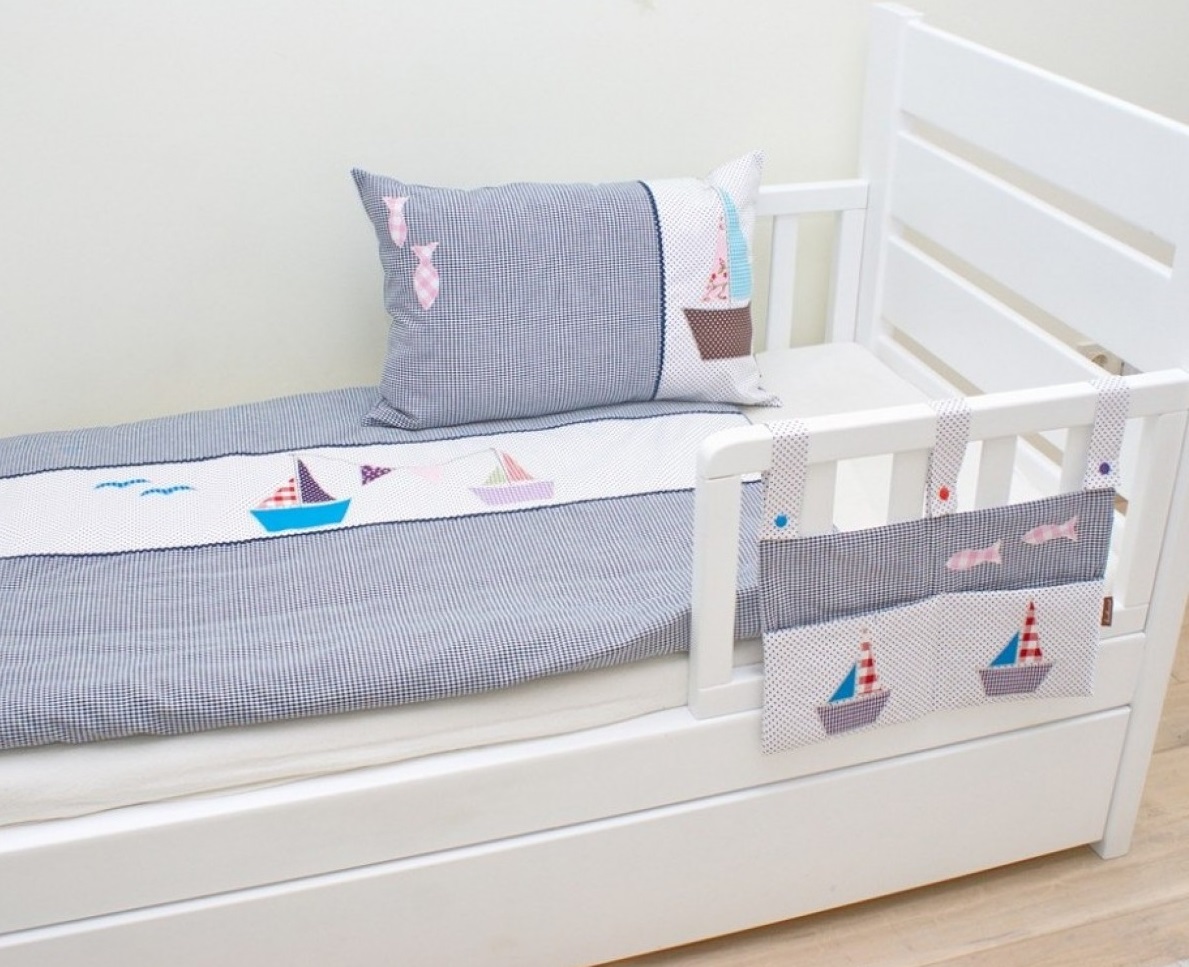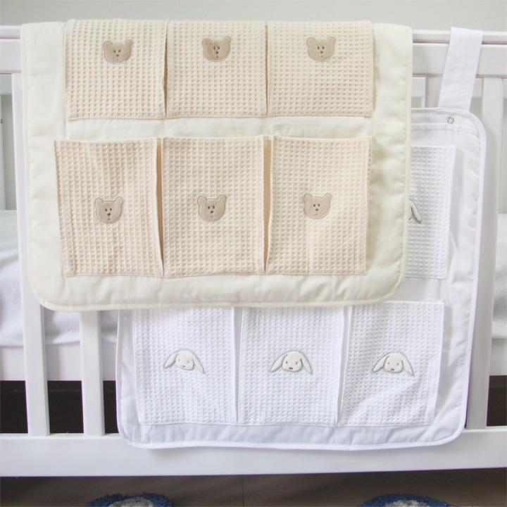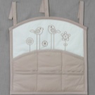 Taschen können flach oder dreidimensional sein, mit Bildern, Applikationen oder Stickereien.Sie können verschiedene Materialien verwenden, Stoff mit Bildern auswählen, mit Knöpfen, Bändern oder Spitze verzieren. Die Methoden zur Befestigung am Bett können ebenfalls variiert werden: Sie können Verschlüsse aus dem Hauptgewebe, aus Bändern oder anderen Materialien herstellen. Sie können die Tasche nur an der Oberseite befestigen, und Sie können in vier Ecken. Alles ist nur durch das Modell der Krippe und Ihrer Phantasie begrenzt.