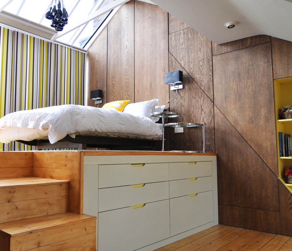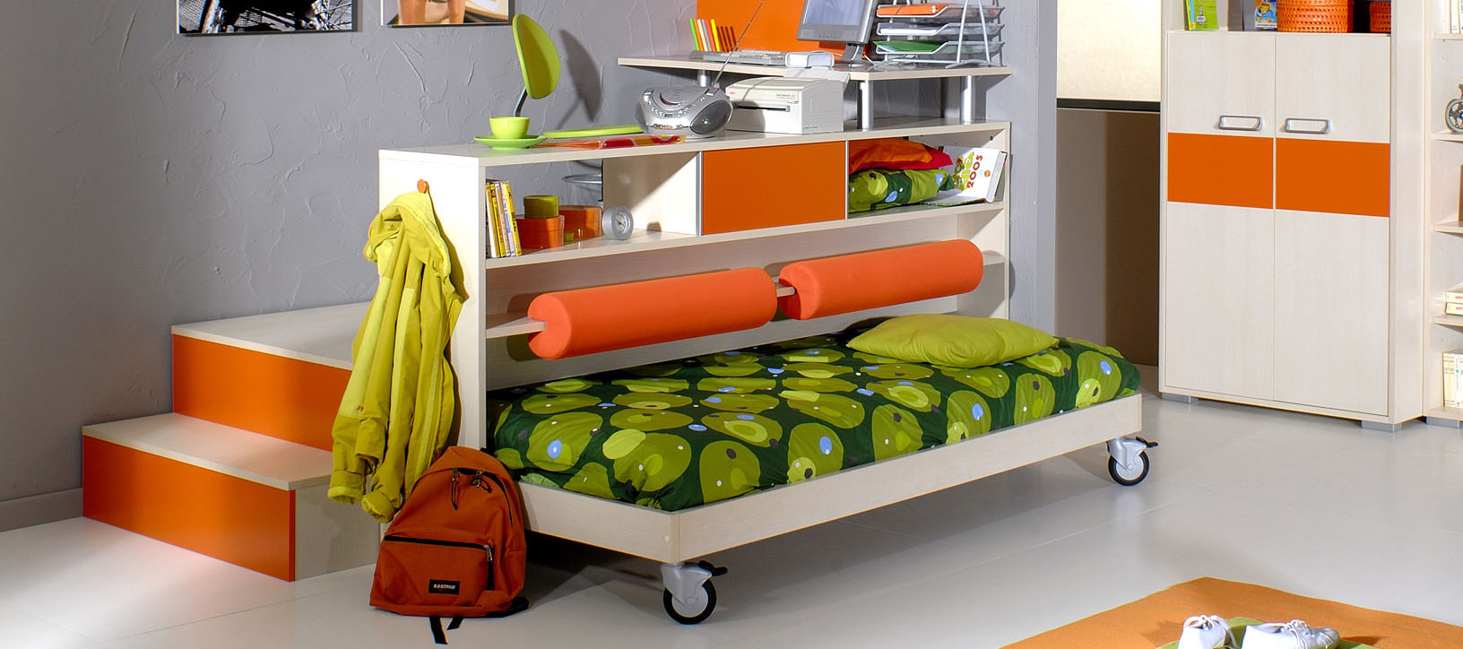 - Podium-Versionen von Holzbetten - nutzen Sie den begrenzten Platz in kleinen Kinderzimmern. Diese Teenager-Betten sind mit Rollen ausgestattet und lassen sich dank des versenkbaren Designs leicht während des Schlafes unter dem Laufsteg entfernen. Während des Tages kann das Podium, wenn das Bett versteckt ist, als Arbeitsraum oder als Platz für Spiele genutzt werden.