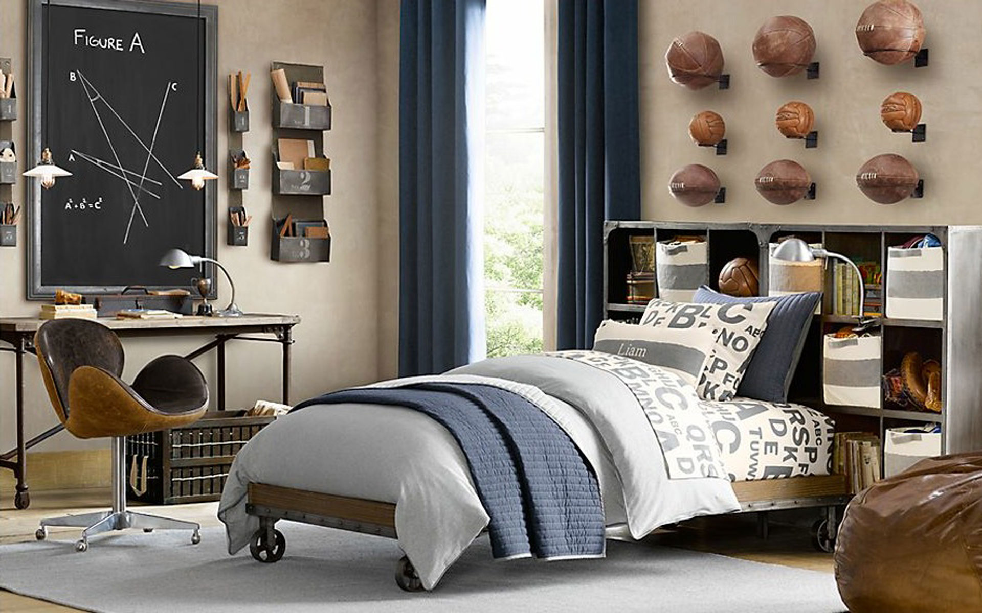 Jungen im Teenageralter bevorzugen den Stil des Minimalismus. Rastplatz umfasst Gegenstände zu den Themen Marine oder Automotive.Die Betten sind aus natürlichem Massivholz, ohne zusätzliche Dekoration oder Dekoration.