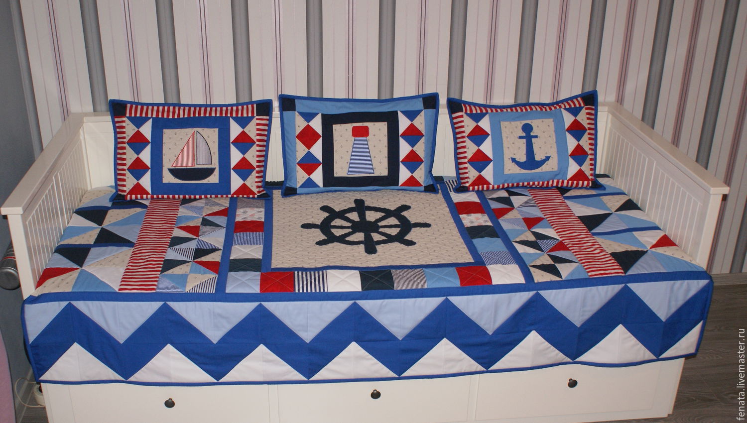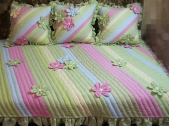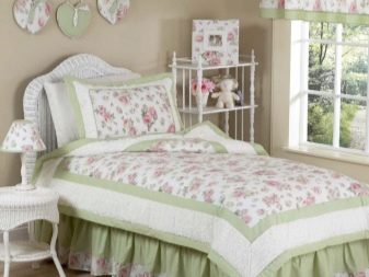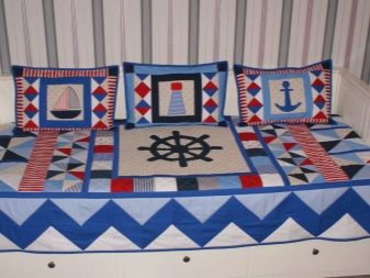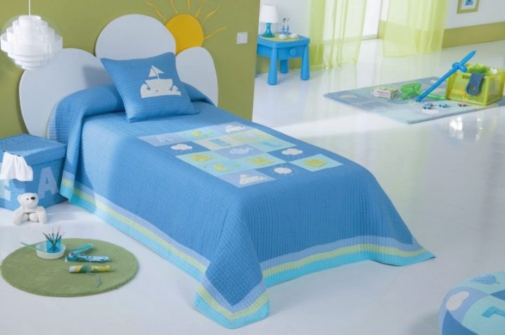 Für Mädchen können Sie Tagesdecken mit verschiedenen Rüschen, Schleifen, Spitzenmuster wählen. Für einen Jungen muss alles übersichtlich und einfach sein. Hier benötigen Sie eine rechteckige Decke, wobei das Hauptdesign von den Farben abhängt.
