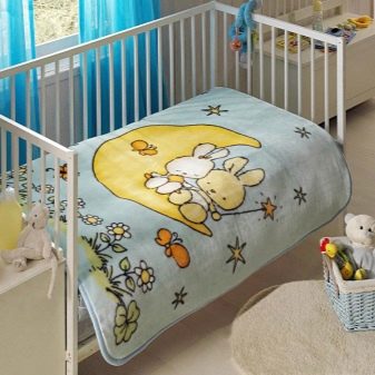 Neugeborene Babys sind besser mit Decken in beruhigenden Pastellfarben. Beige, Rosa, Blau. Es sollten keine zu hellen Bilder sein, um das Baby nicht zu stören.