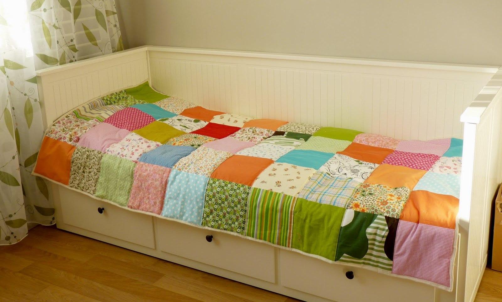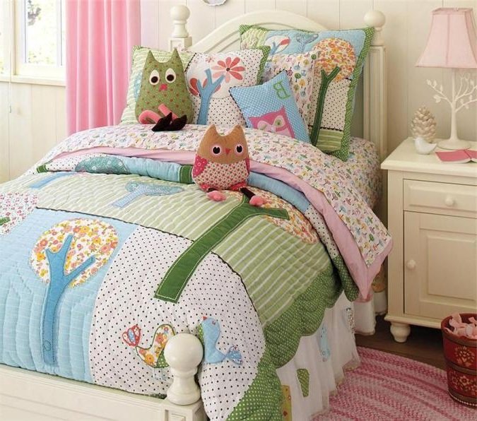 Der Bezug auf dem Bett für Ihr Kind kann mit Ihren eigenen Händen gemacht werden. Dann wird es die Wärme deines Herzens tragen. Sie können einfach hellen Faden häkeln. Das Plaid aus dicken Strickfäden wird toll aussehen. Aber Sie können nähen.Der Bezug in Patchwork-Technik, mit Polyester-Wattierung versteppt, wird toll aussehen und dem Kinderzimmer einen einzigartigen Stil verleihen, zumal Handarbeit in den letzten Jahren sehr beliebt ist.