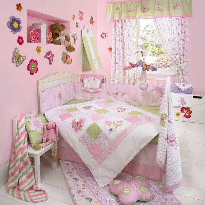 Da Mädchen warme Farben (Pfirsich, Beige, Pink) besser wahrnehmen, und Jungen kühlere Töne (blau, grün, grau) haben, sollten diese Farben im Innenraum bevorzugt werden. Dies gilt auch für die Tagesdecke.