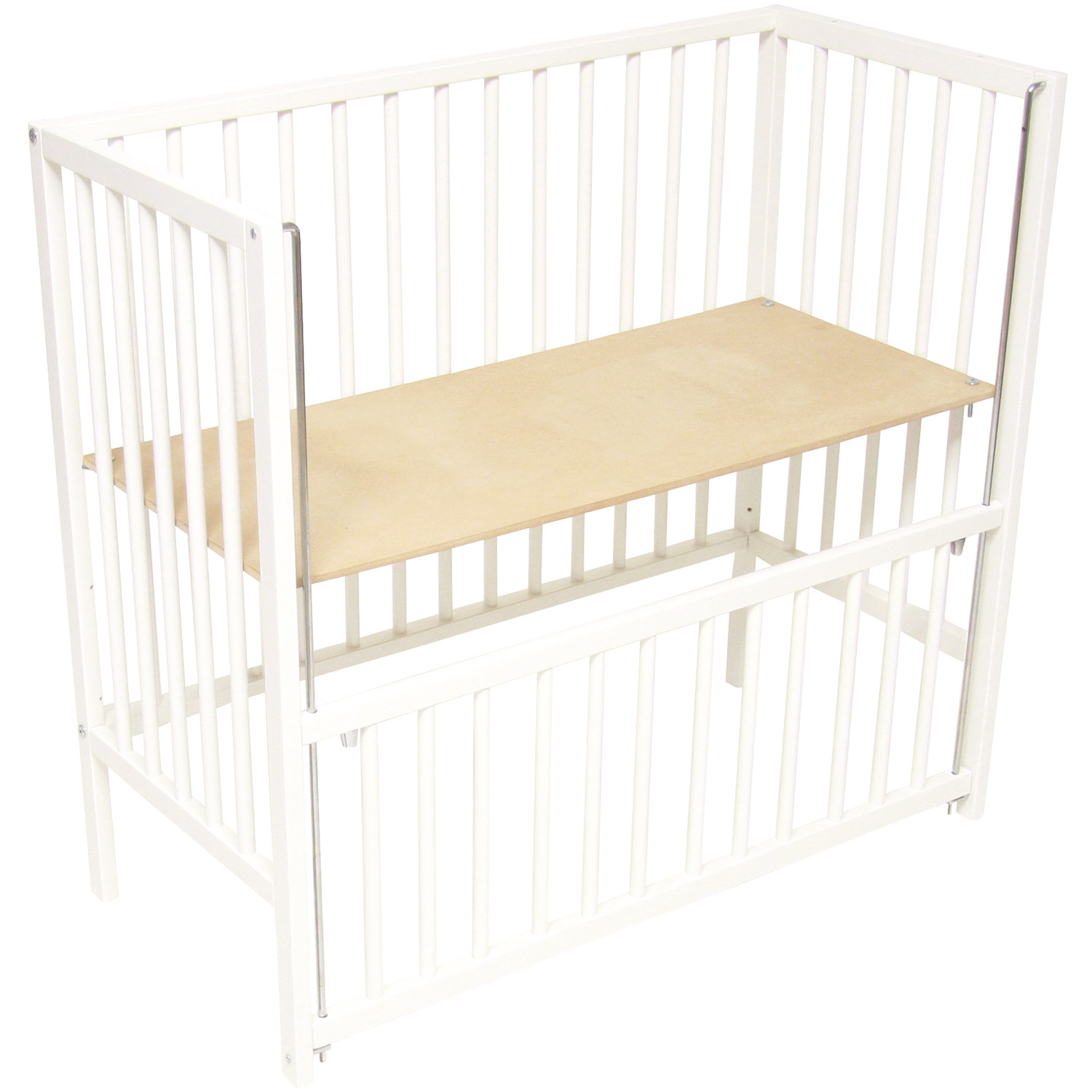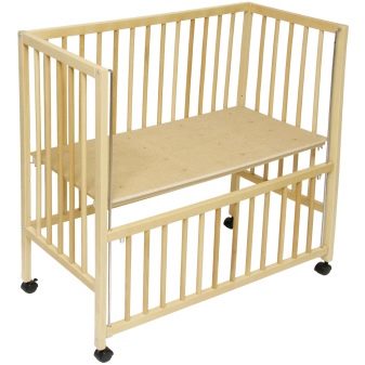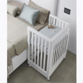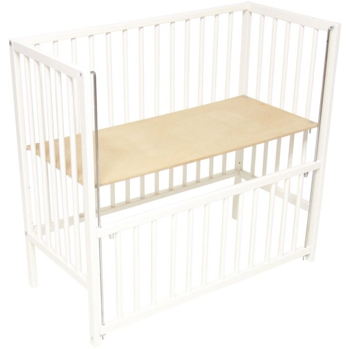 - Die Größe eines regulären Kinderbettes und einer seitlichen Krippe variiert. Das Präfix ist viel kleiner und wird somit für kleine Wohnungen bequemer, wird den Raum nicht durcheinander bringen.