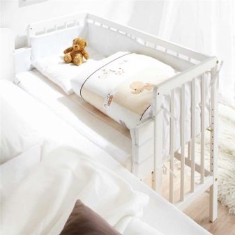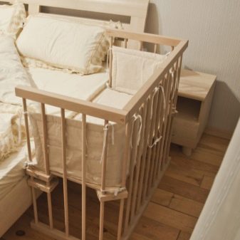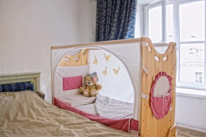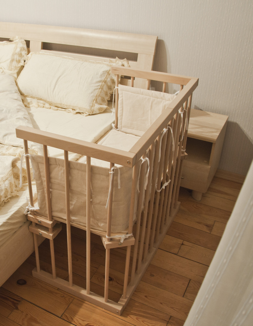 Aber mit der Zeit beginnen die Eltern zusammen zu schlafen. Außerdem ist das Kind manchmal schwer in seinem Bett zu unterrichten.Solche Bettenmodelle helfen dem Kind, die Unabhängigkeit zu lehren, aber gleichzeitig berauben sie ihm nicht die Möglichkeit, in der Nähe seiner Mutter zu sein. Gleichzeitig kann die Mutter sicher in der Nähe des Babys sein und keine Angst haben, ihn im Traum festzunageln.