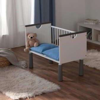 Es gibt viele Arten und Modelle solcher Betten. Es gibt Modelle, die sich in einen Tisch oder einen Laufstall verwandeln, sowie ein Ort zum Spielen.