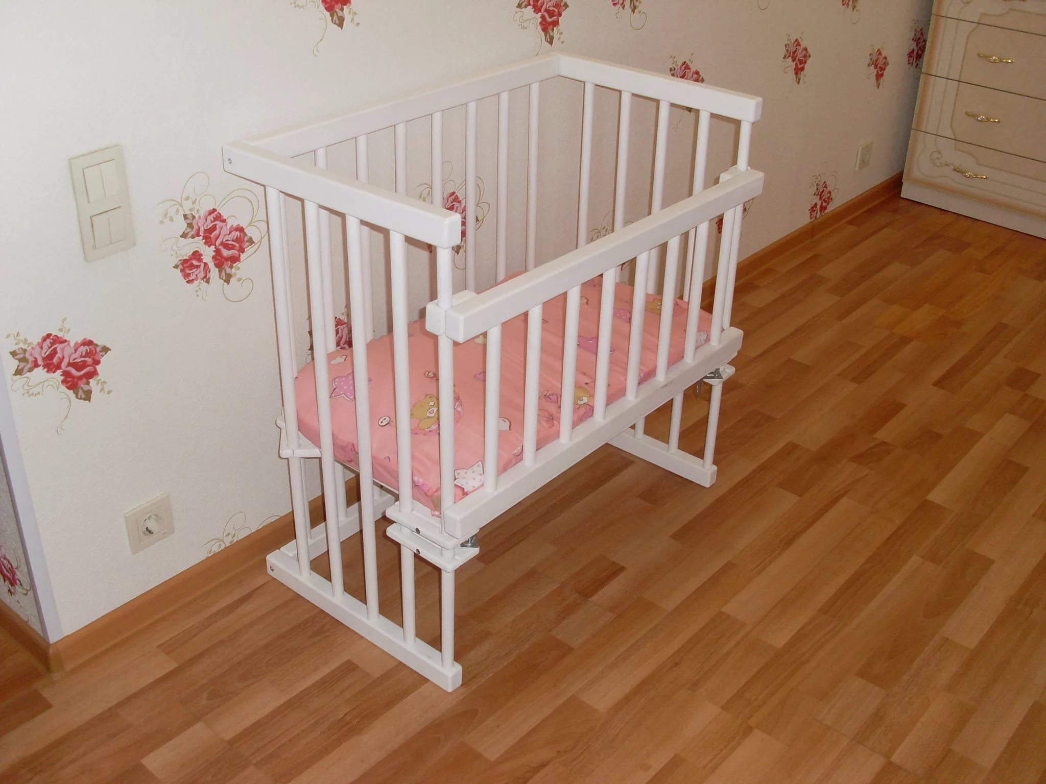 - Viele Kinder wachen oft nachts auf und müssen geschaukelt werden. Dies ist kein Problem mit einem Kinderbett, weil es reicht, nur zu erreichen.