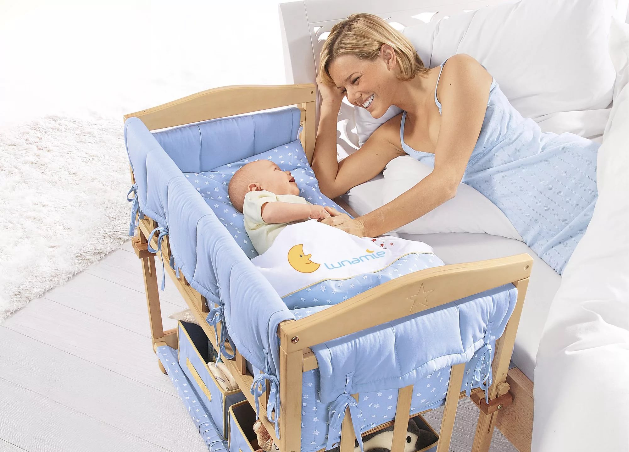 Zusätzliche Betten für Neugeborene gewinnen an Popularität. Ärzte und Psychologen beweisen, dass Kinder, die neben ihrer Mutter schlafen, sich schneller entwickeln.Angst bei diesen Babys ist viel geringer als bei Kindern, die getrennt von ihren Eltern schlafen.