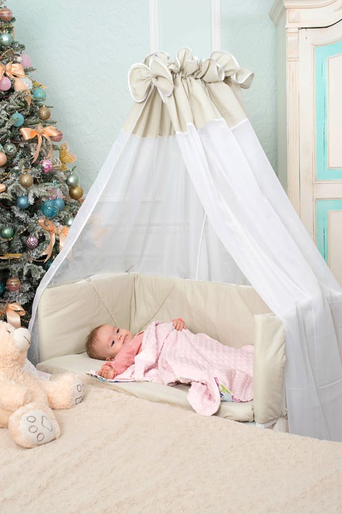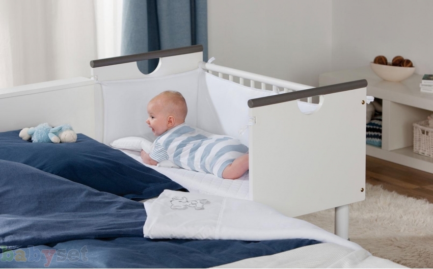 - Das Baby schläft in der Nähe, gleichzeitig in seinem eigenen Territorium. Sie können mit Ihrem Kind schlafen, aber das macht das Bett nicht kleiner, aber noch mehr wegen der Konsole. So wird der Schlaf des Kindes und der Eltern entspannter.