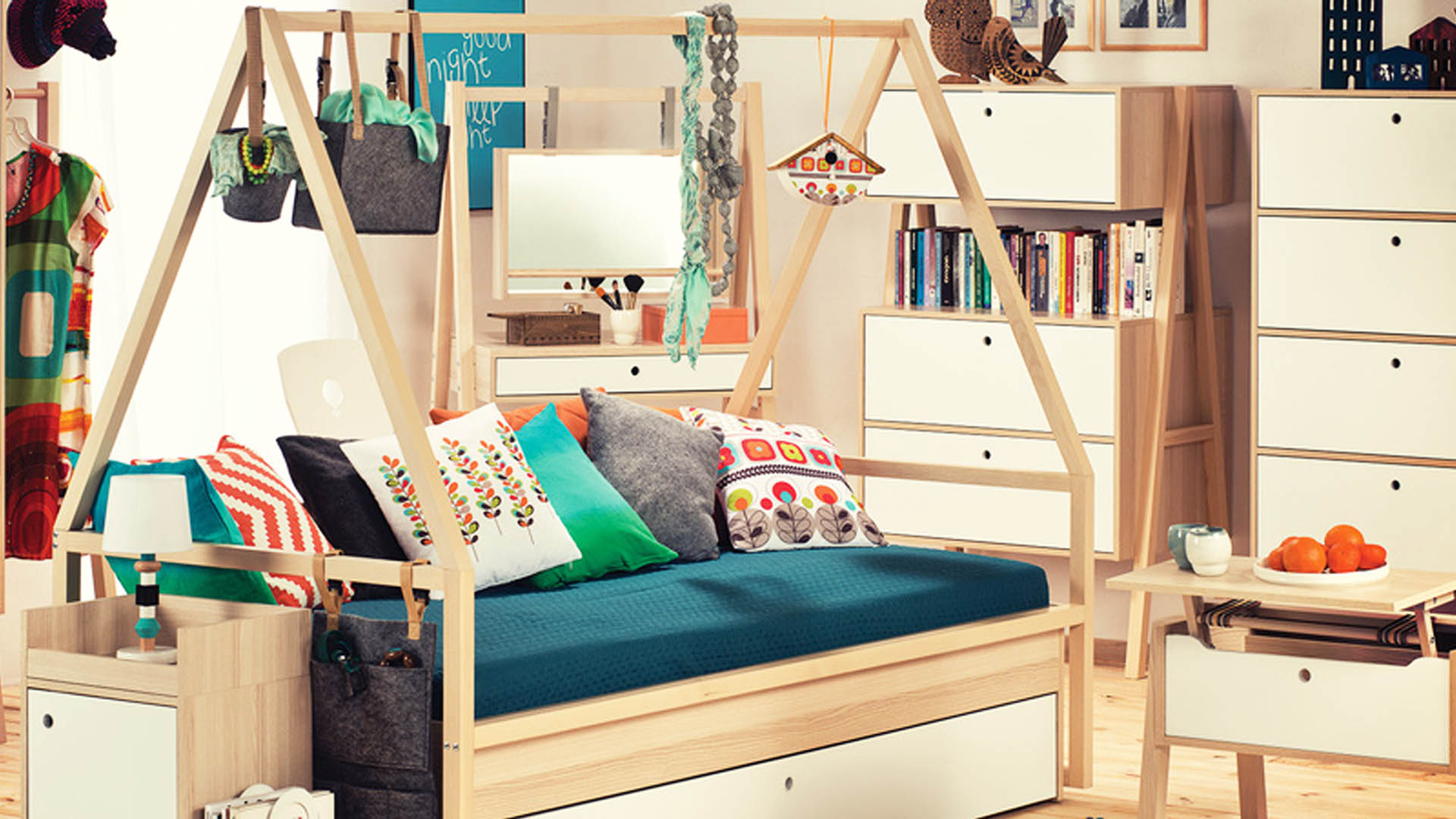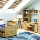 Holzmöbel sind viel länger, es sieht im Schlafzimmer eines Teenagers ästhetisch aus, schafft eine gemütliche und harmonische Atmosphäre.