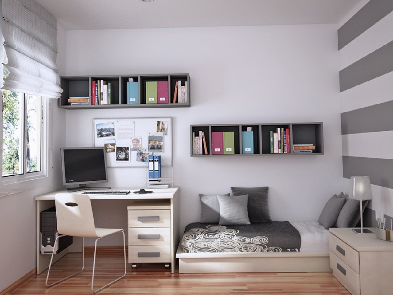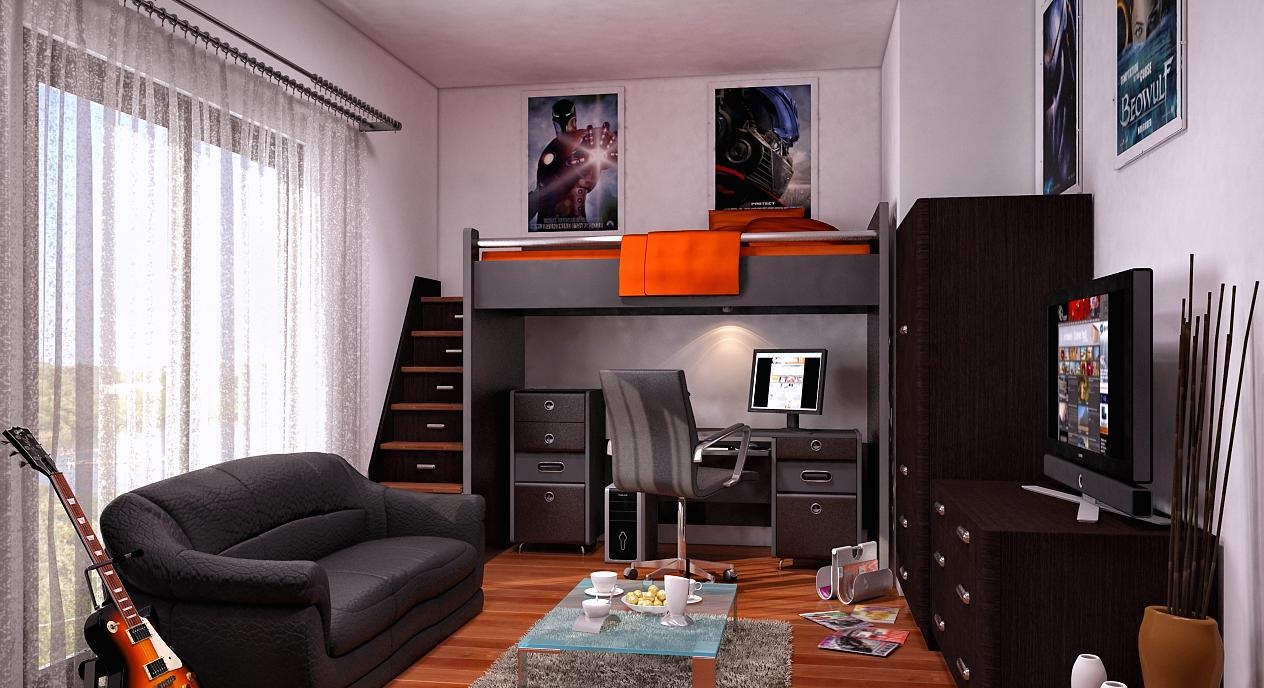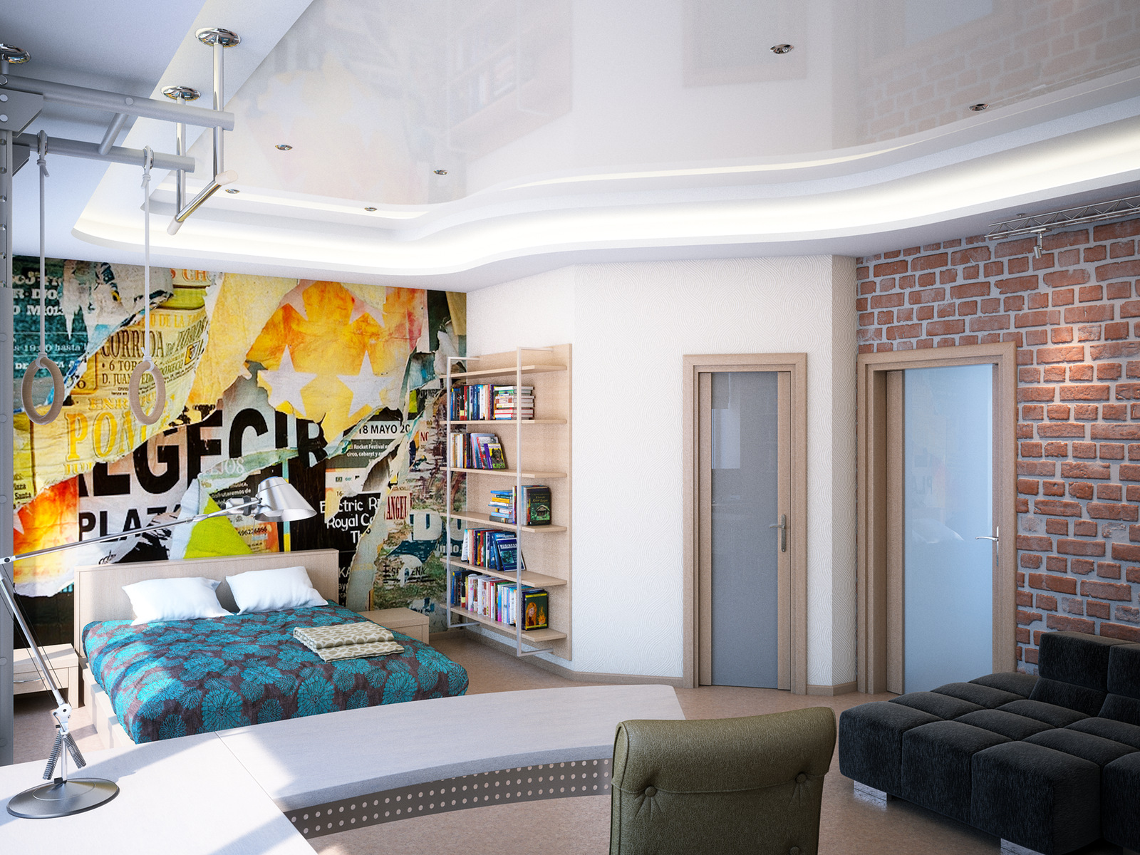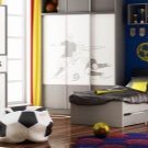 Jungs bitte einfacher. In der Pubertät suchen sie die Funktionalität ihres Zimmers. Das Bett kann einen kleinen Platz darin einnehmen, und die frei gewordene Raum Teenager für Trainingssimulatoren, Sportgeräte, Bücher, Schränke oder Schränke für Gadgets und mobile Geräte verteilen.