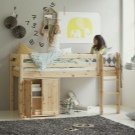 Der Baum gilt als das beste Material für das Bett - sowohl Kinderzimmer als auch Teenager. Die meisten Hersteller verwenden Span- oder Faserplatten für die Herstellung von Möbelkollektionen für Kinderzimmer. Aber für ein Bett mit Eiche, Esche, Buche. Naturholz nach sorgfältiger Bearbeitung und Politur ist kein Grund für Splitter und Beschädigungen.