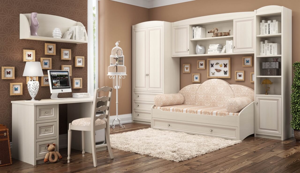 Trotz der Tatsache, dass sich das Jugendbett von der Kinderkrippe unterscheidet, sind die Anforderungen an die Sicherheit von Möbeln für Kinder im Alter von 10 bis 14 Jahren immer noch relevant.Ein großes Plus wäre, wenn die Möbel für das Schlafzimmer keine scharfen Ecken oder Vorsprünge haben, über die man sich verletzen kann.