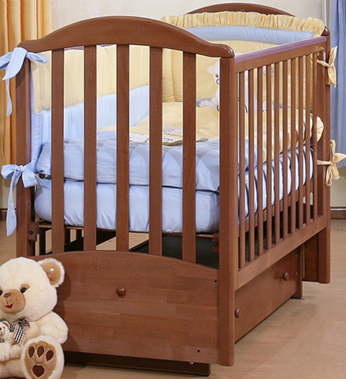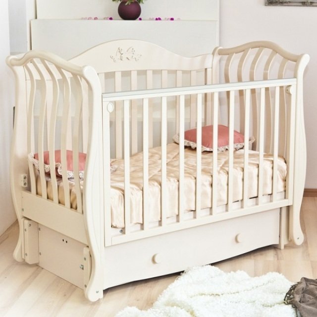 Das Babybett ist ausschließlich aus Naturholz gefertigt. Streng verbotene Späne, Kratzer und Risse am Produkt! Auch Umwelt sind Kopien von MDF und Spanplatten, deren Qualität durch die entsprechenden Zertifikate bestätigt wird. Die beliebtesten und beliebtesten sind rechteckige Modelle. Sie können nur an den Beinen installiert werden oder sie können einen Pendelschwenkmechanismus haben, der das Bett komfortabler und funktioneller macht.