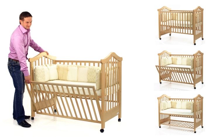 Klassische Optionen gelten als universell und sind sehr gefragt. Sie ergänzen perfekt jedes Interieur und erfüllen die Bedürfnisse des Babys. Ihr Aussehen ist ein Bett mit Schutzwänden, die entfernt oder abgesenkt werden können. Eine solche Funktionalität macht den Gebrauch so bequem wie möglich.