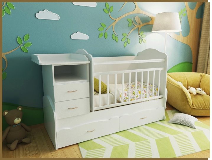 Kinderbetten mit einer Kommode sind nicht nur für den Rest des Kindes gedacht, sondern auch für die Aufbewahrung von Kleidung, sowie für das Wickeln des Neugeborenen. Das Design solcher Produkte ist ziemlich praktisch,Immerhin können Sie damit viel Platz im Kinderzimmer sparen. Sie können sowohl mit Pendel als auch in üblicher Form sein.