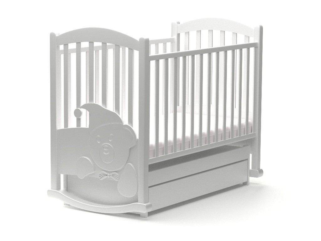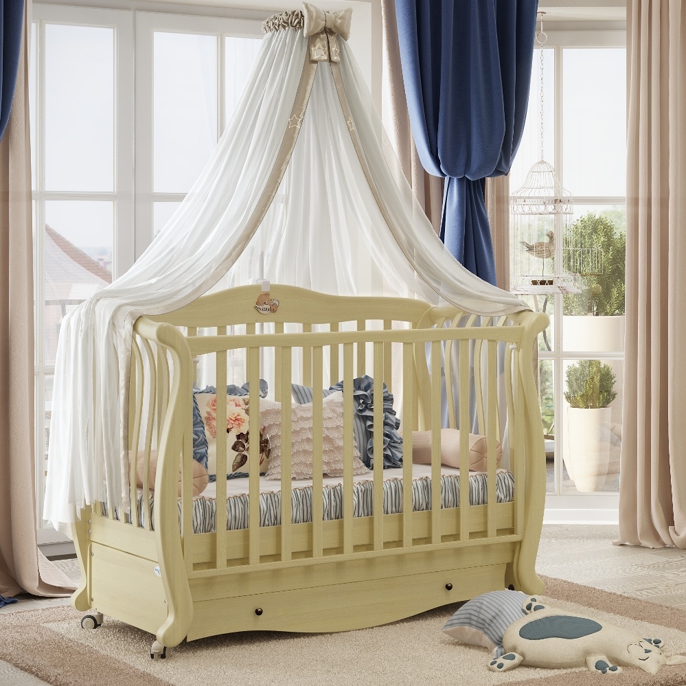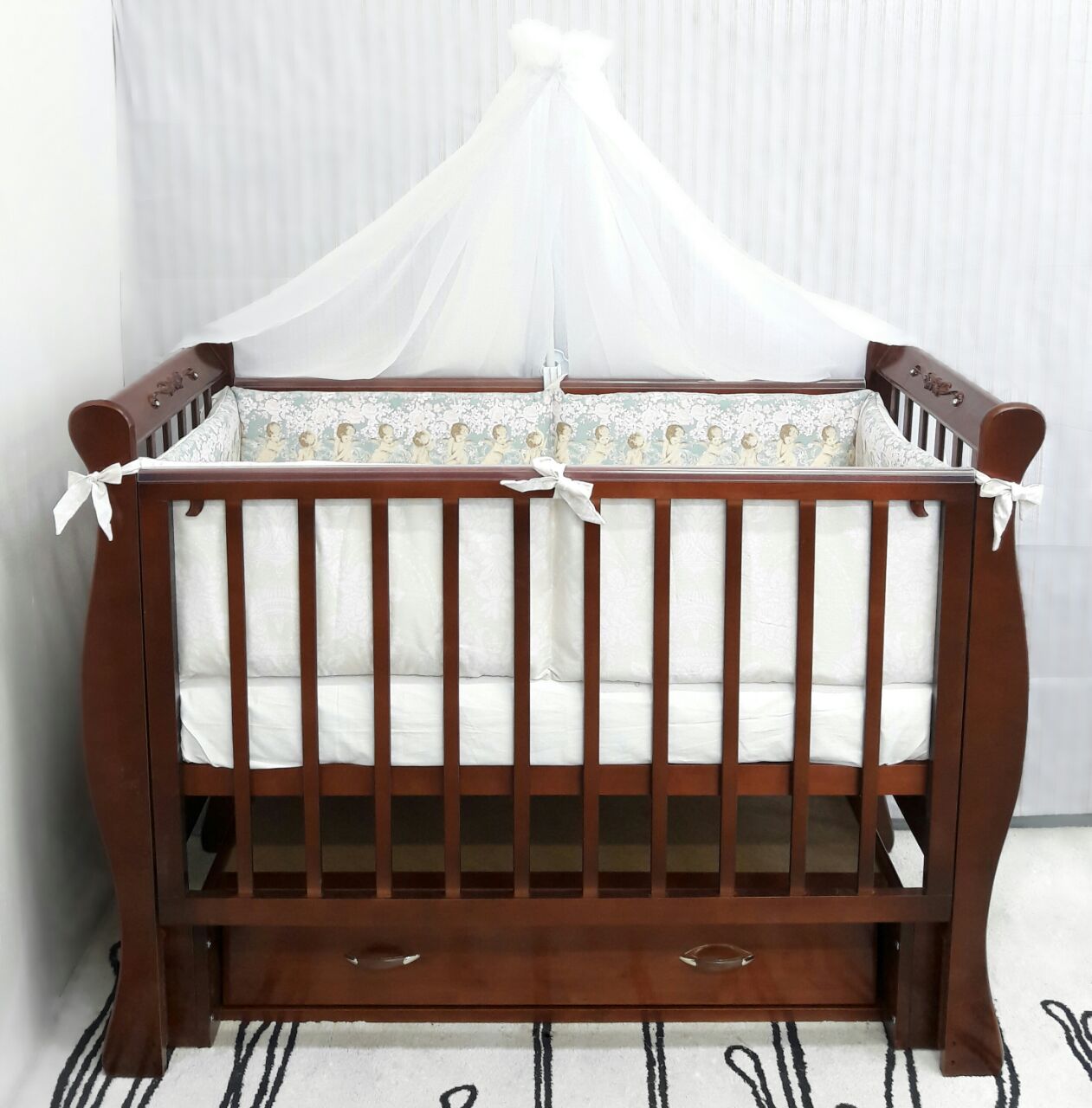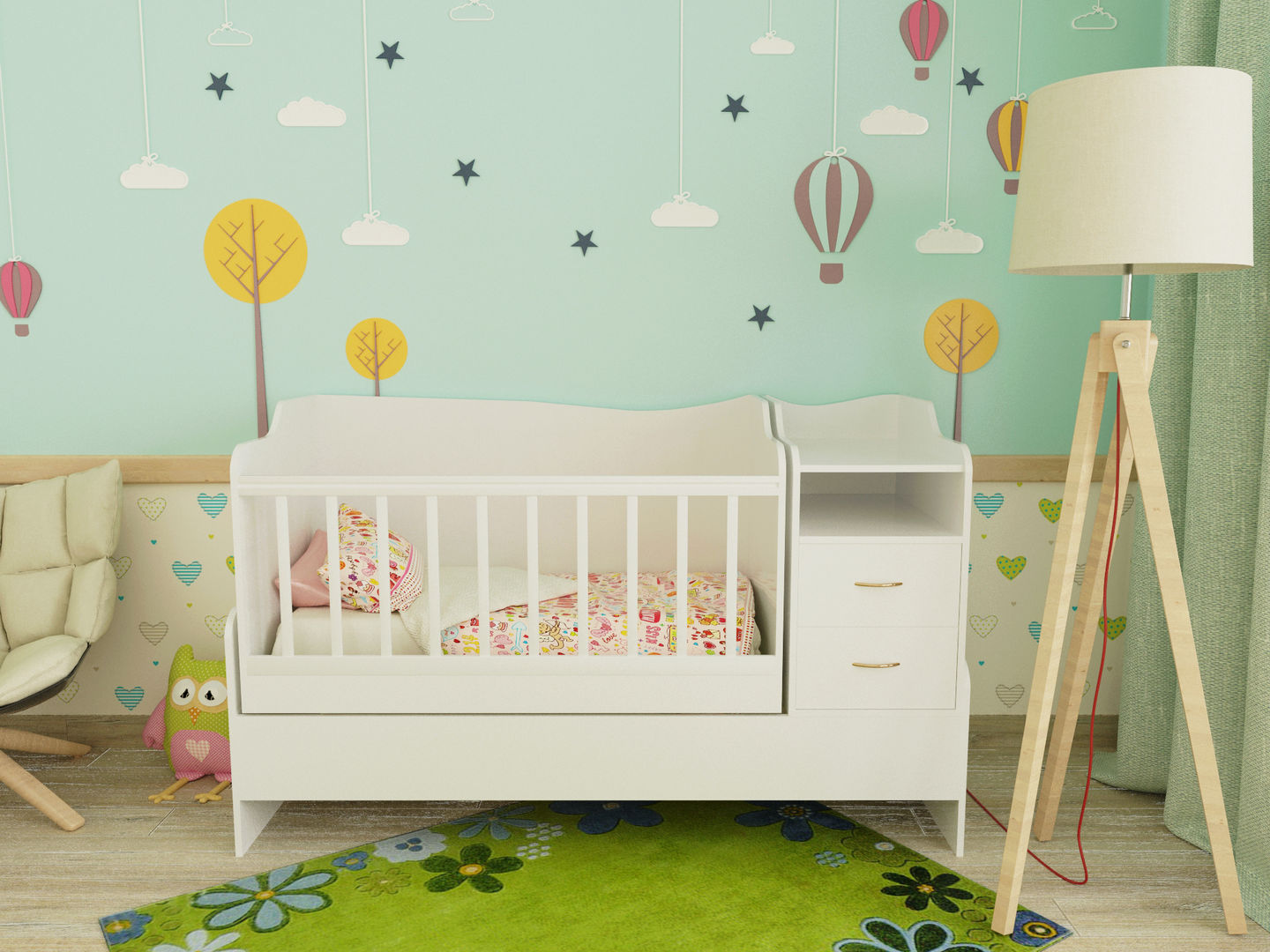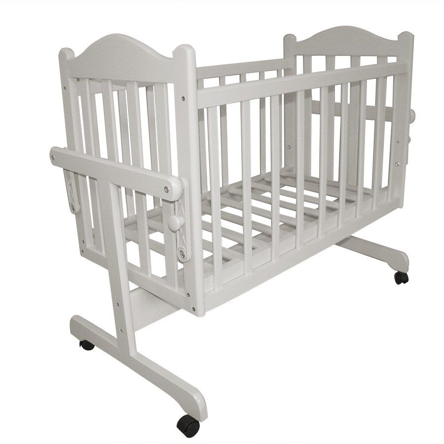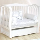 Normalerweise Krippen sind in verschiedenen Schattierungen von Holzfarbe gemacht, aber es gibt Ausnahmen. Ein weißes, in zarten Mint- oder Blautönen gehaltenes Bett versetzt das Baby in eine besinnliche Stimmung und schafft bei seinen Eltern eine beruhigende Stimmung. Es passt perfekt in das Design eines klassischen Kinderzimmers im romantischen Stil.