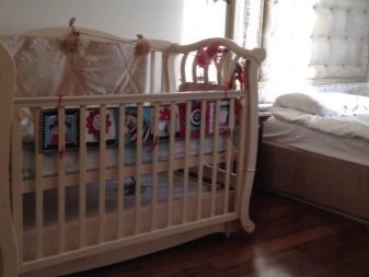 Wenn ein Kind einfach in einem solchen Bett spielt, wird es mit Hilfe von Klammern fixiert.