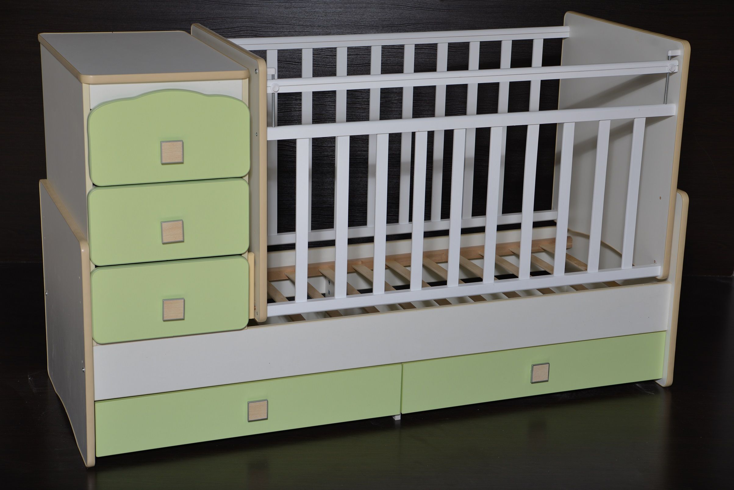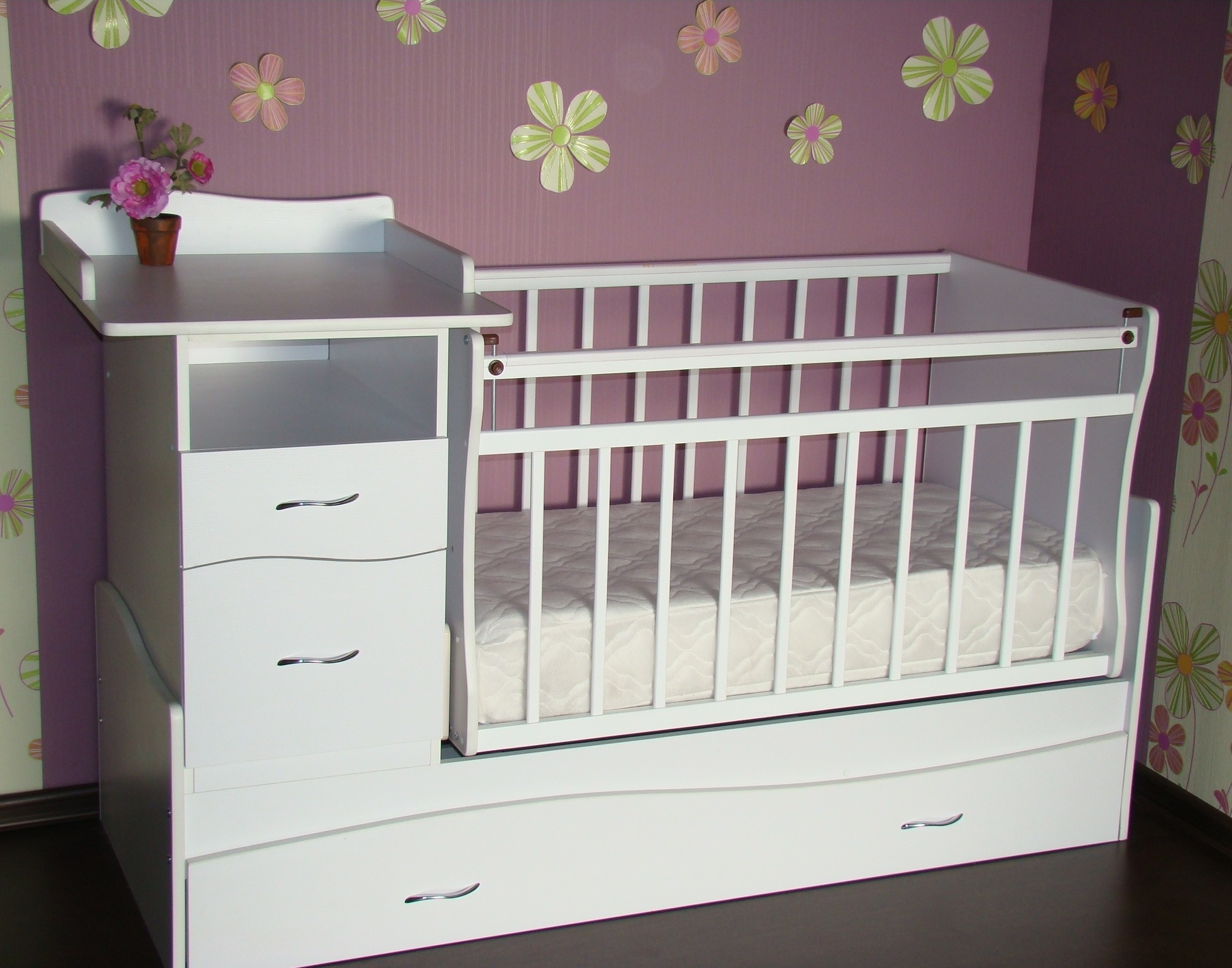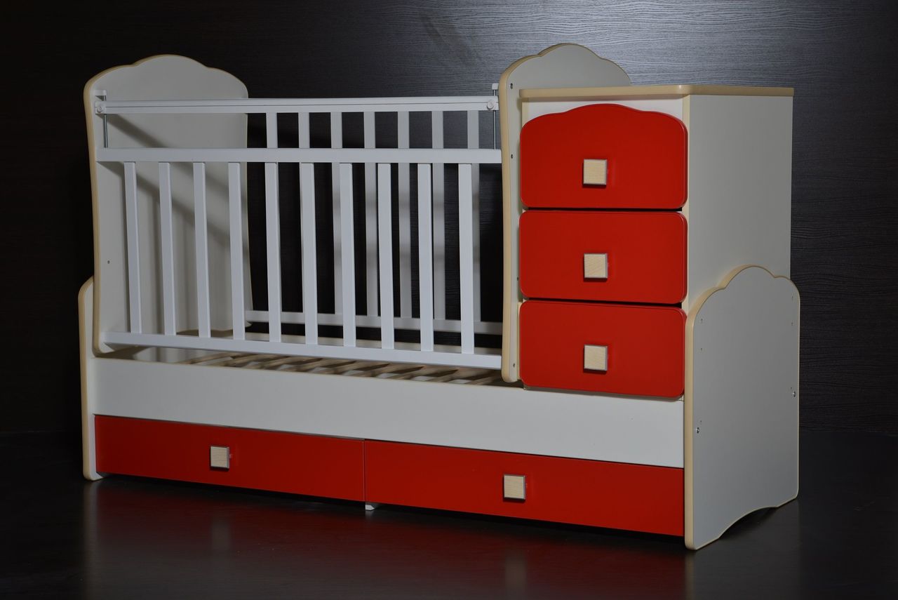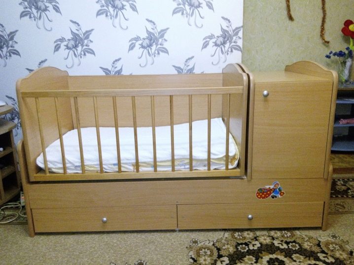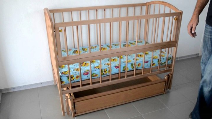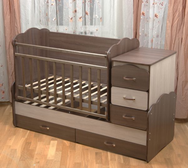 Kinderbetten mit einem Pendelmechanismus können in verschiedenen Kombinationen aus natürlichem Holz mit Spanplatten und MDF hergestellt werden.