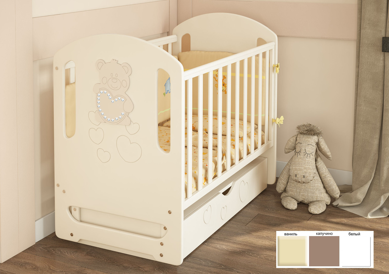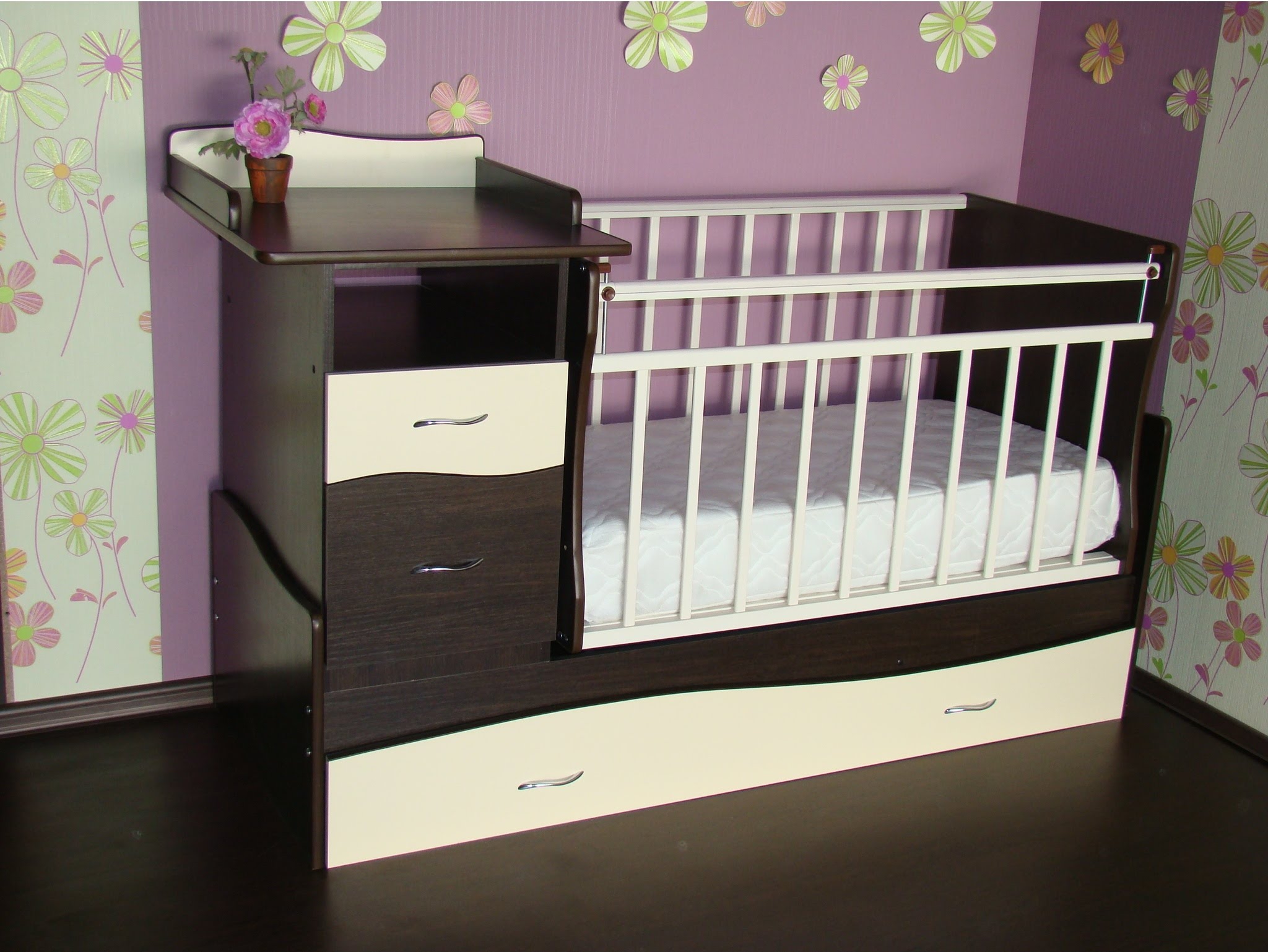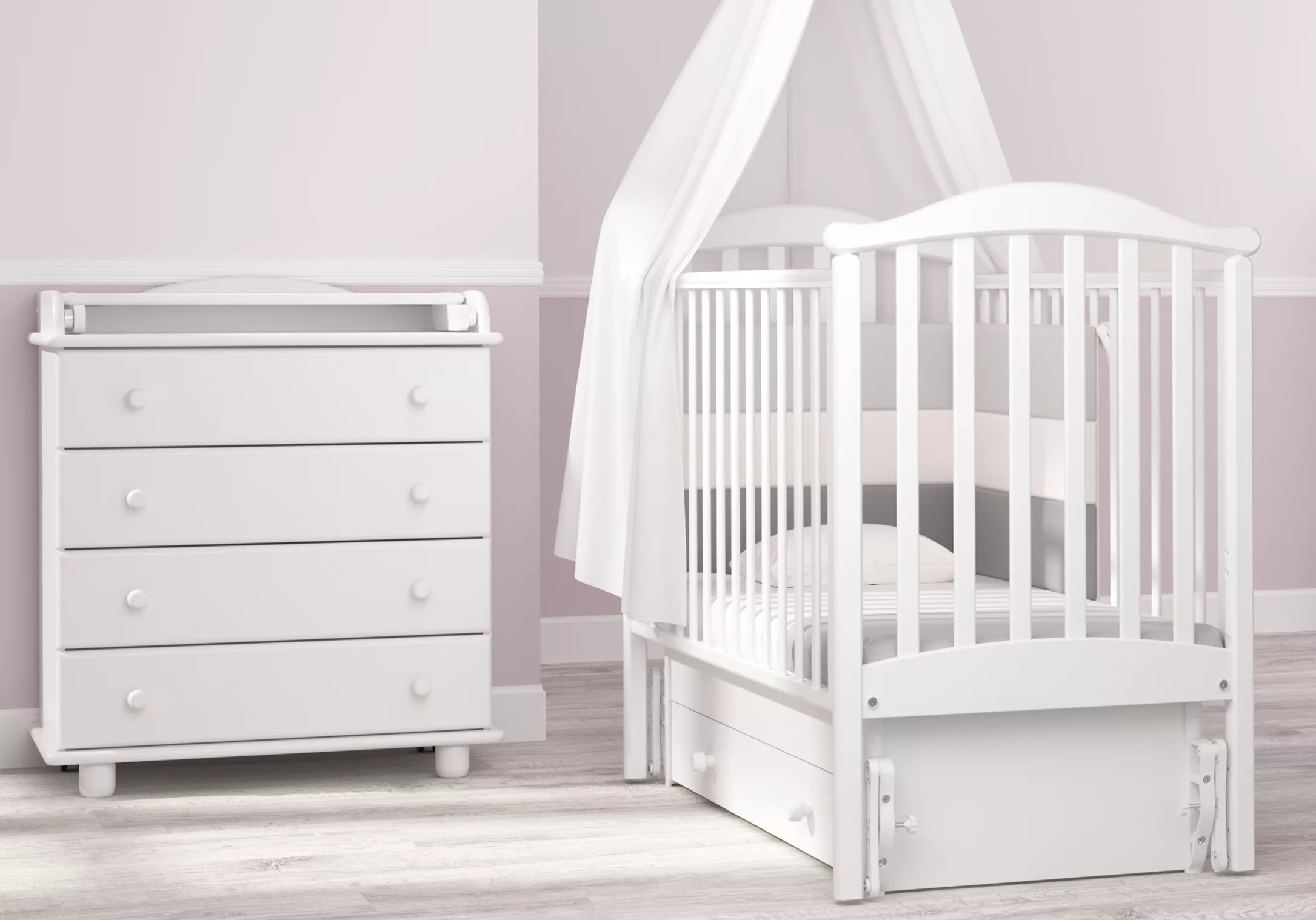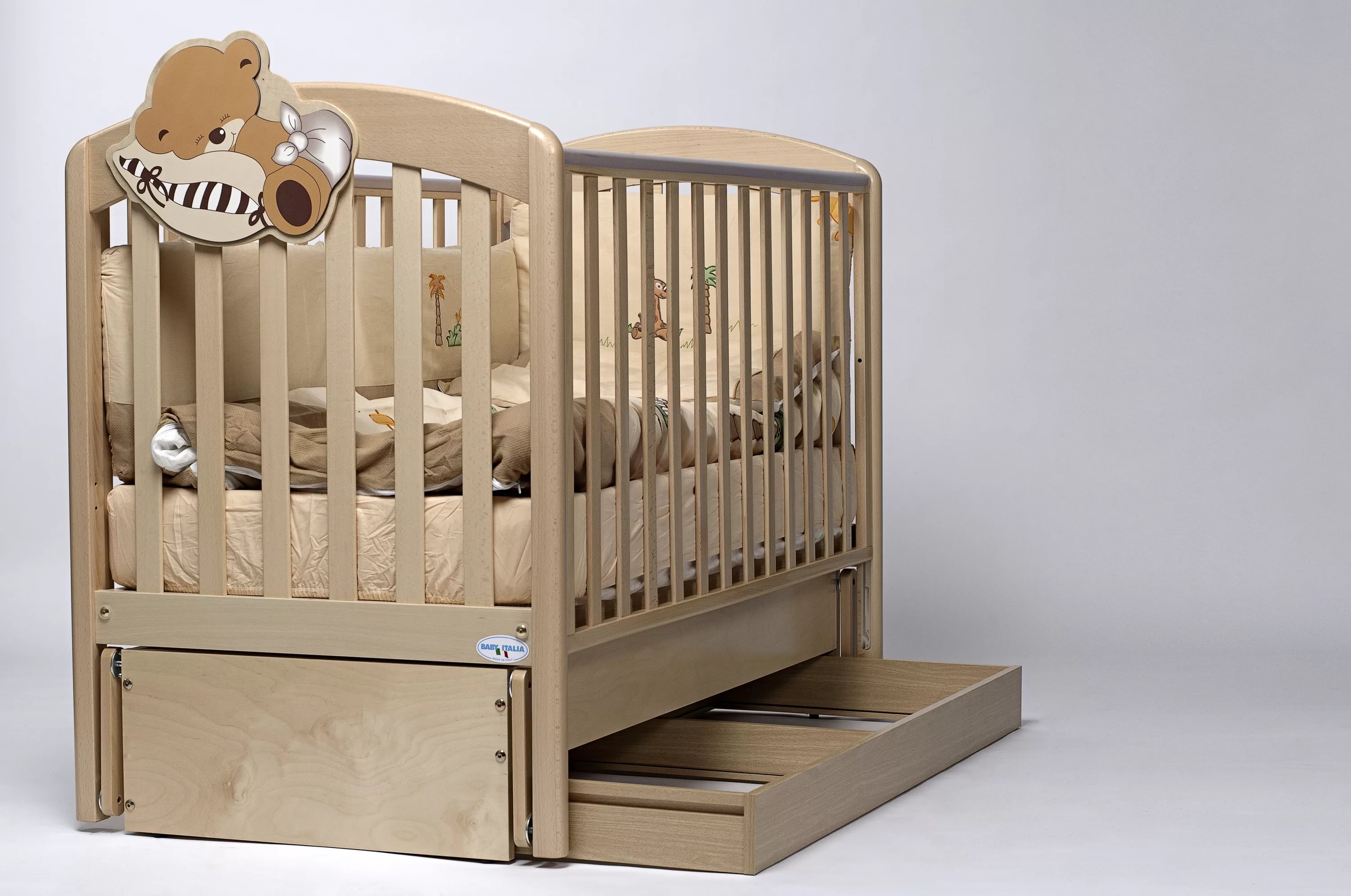 Kinderbetten mit einem Pendelmechanismus können in verschiedenen Kombinationen aus natürlichem Holz mit Spanplatten und MDF hergestellt werden.