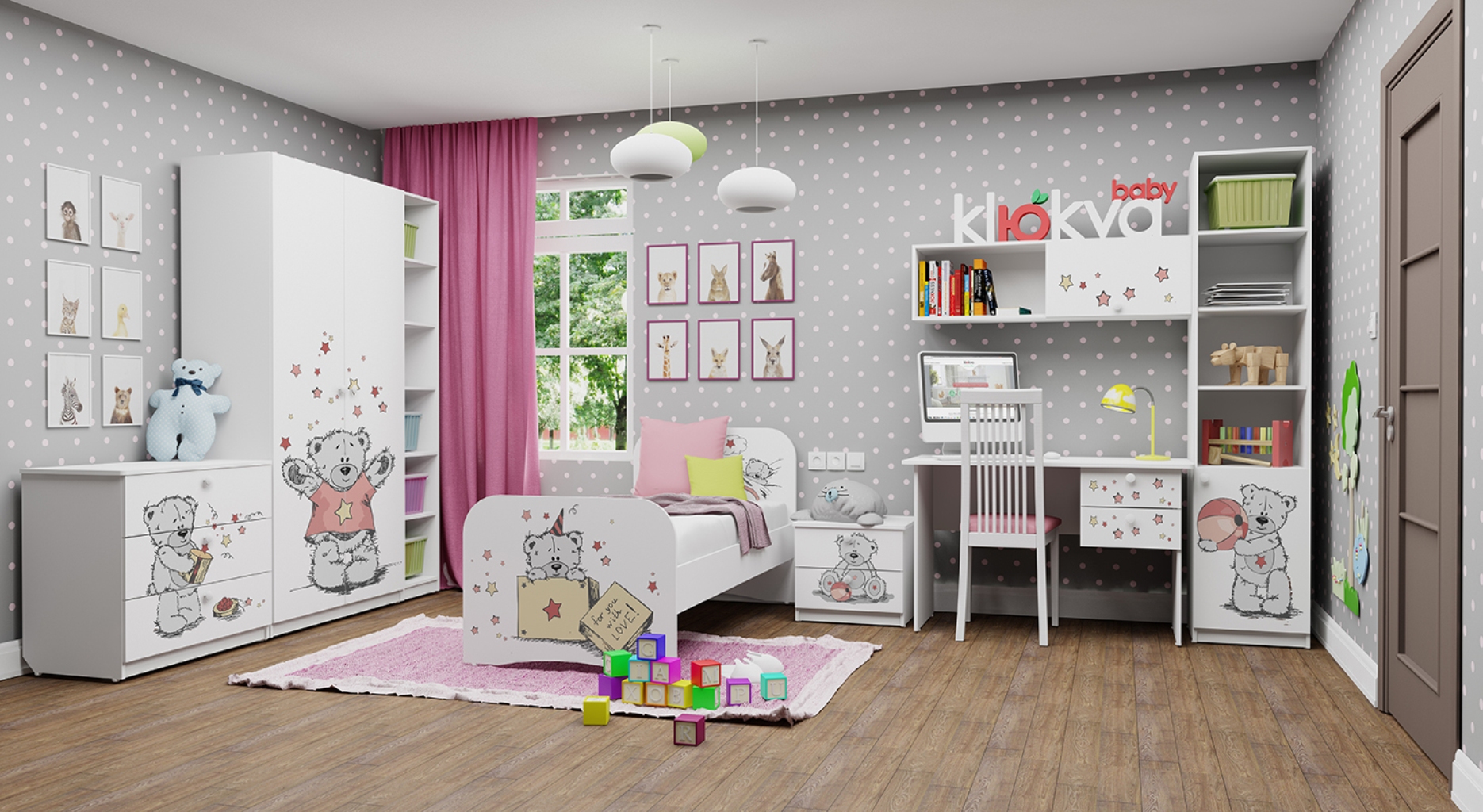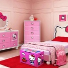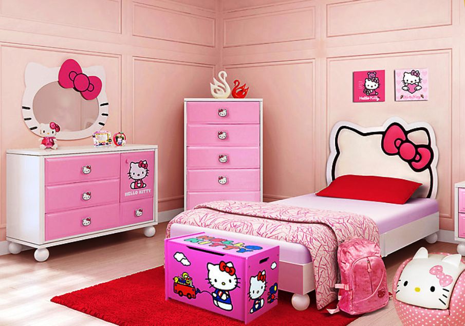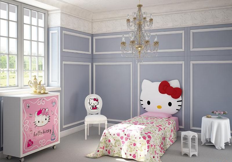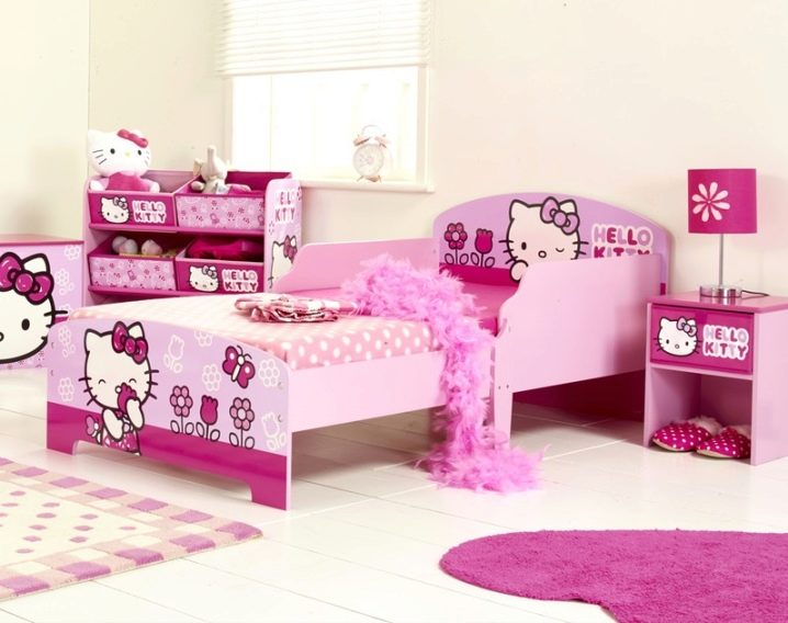 Kleine Mädchen bewundern süße Bilder mit Hello Kitty Bildern mehr. Dieser Druck ist vielen bekannt und kann sowohl die Wände der Krippe als auch das Kopfteil schmücken.
