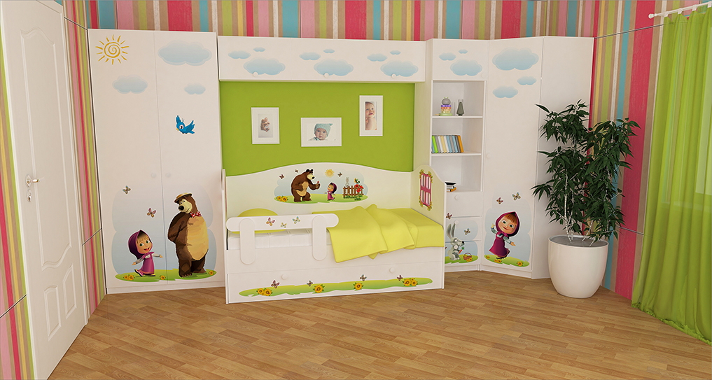 Das Beste von allem, Drucke mit dem Bild von hellen Mascha werden das Schlafzimmer eines kleinen Mädchens schmücken, das so positiv ist wie die Hauptfigur des Zeichentrickfilms.