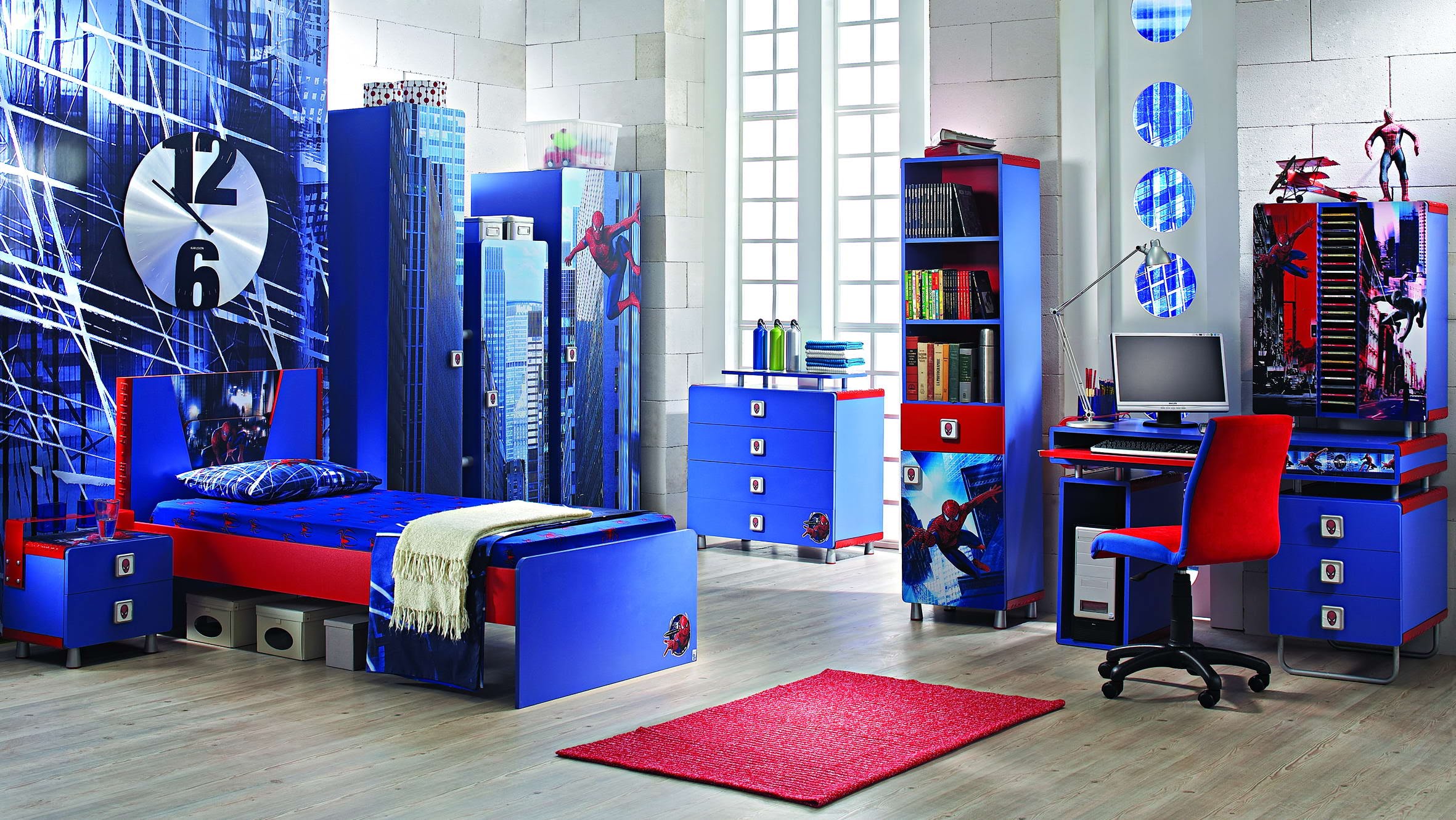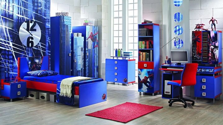 Schließlich, ganz zu schweigen von einer der beliebtesten Comicfiguren - Spider-Man. Der hellrote und blaue Anzug dieser Figur passt gut in das Innere des Jungenzimmers.