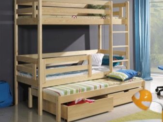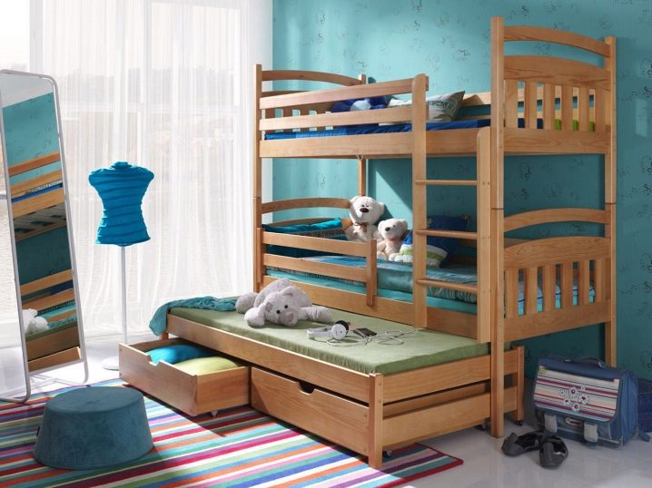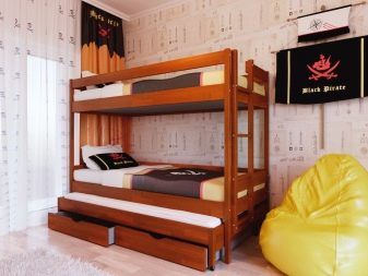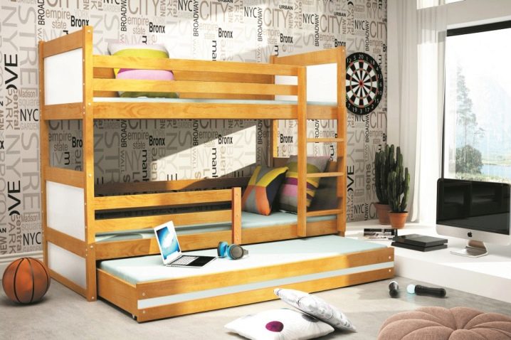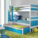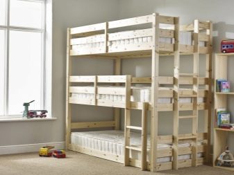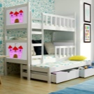 Ein Dreibett-Bett für Kinder ist eine ideale Option für eine große Familie. Es spart Platz in der Wohnung und löst das Problem, zusätzlichen Platz zu finden. Betten mit mehreren Etagen können unabhängig voneinander oder auf Bestellung hergestellt werden.