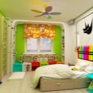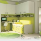 Was die grüne Farbe betrifft, wird sie als universell angesehen, da sie sowohl mit Energie geladen als auch beruhigt werden kann. Im Zimmer eines kleinen Jungen sollte der grüne Schatten warm sein: Apfel, Olive, Kräuter oder Minze, aber es ist besser, kaltes Grün abzulehnen, es ist deprimierend.