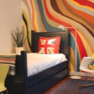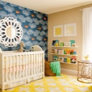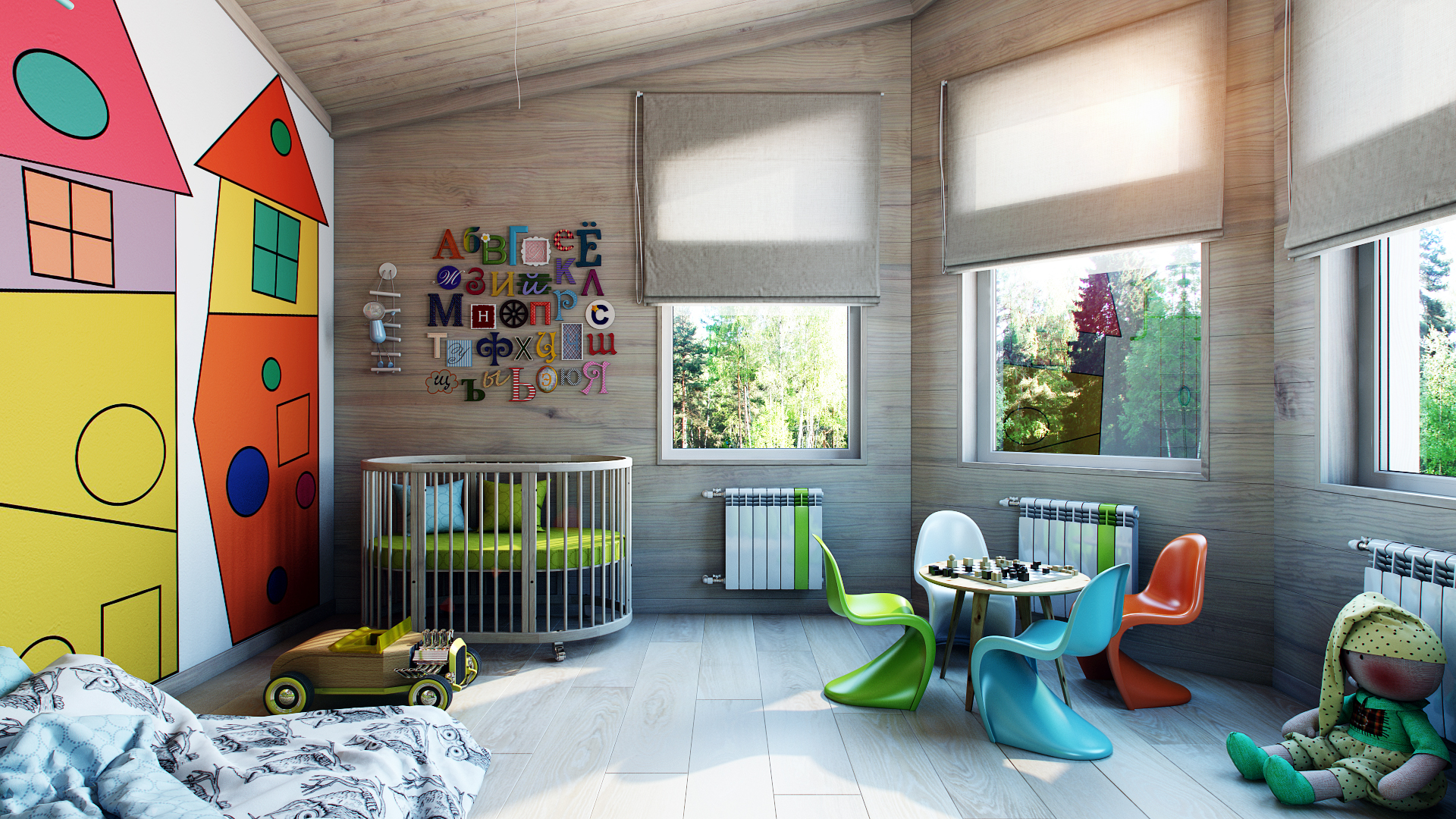 Eine weitere interessante Lösung für die Auswahl eines Hintergrundbilds für ein Kinderzimmer ist ein Trick: Der Hintergrund entsteht durch die Kontrastierung einer der Wände.