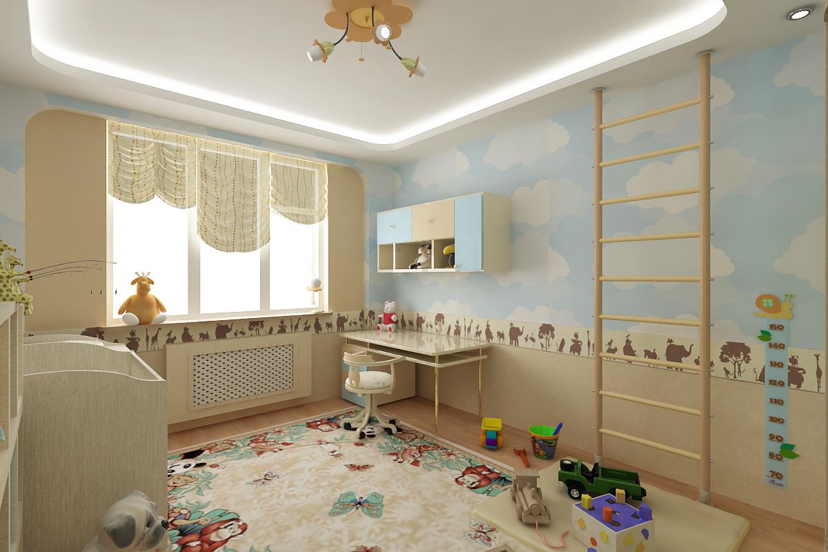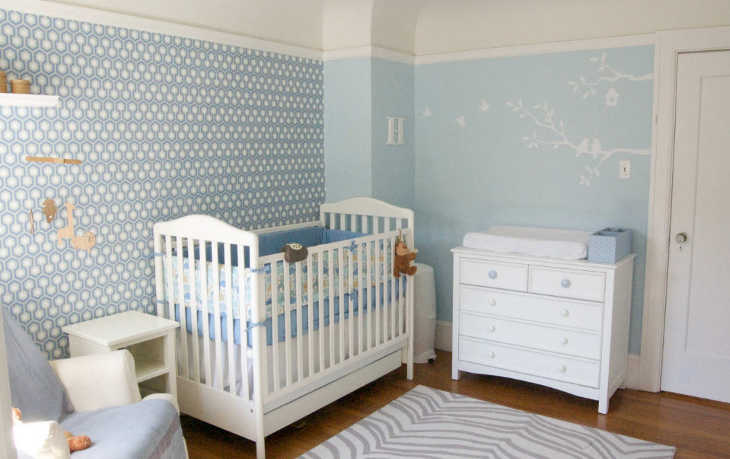 Einen Raum für einen neugeborenen Jungen ausstatten,Vergessen Sie teure Tapeten! Wählen Sie die gebräuchlichste - Papier und glatt, auf der einerseits wird es bequem sein, den Brei auf das Baby (oder etwas anderes) zu schmieren, aber andererseits - um sie abzureißen und zu werfen, tut es auch nicht leid. Sie können neue zum Familienbudget kaufen und dies ist praktisch nicht betroffen.