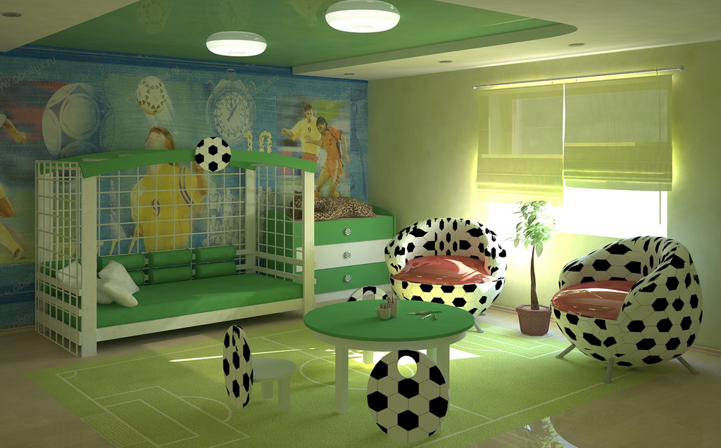 Dieses Thema ist nah an vielen Jungs, und sie werden glücklich sein, Tapeten mit Bällen, mit Fußballspielern und verschiedenen anderen Sportkomponenten zu wählen.