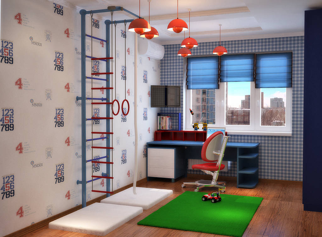 Der Raum wird ideal für einen Jungen jeden Alters sein, wenn alles darin den Geschmack und die Bedürfnisse des Babys sowie die Anforderungen des Designs erfüllt.