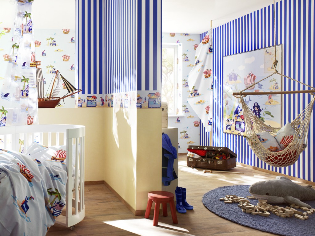 Wenn ein zukünftiger Matrose in einer Familie wächst, wird er ein anderes Bild mögen - mit der Unterwasserwelt, mit Piraten, mit einer Truhe, aus der goldene Münzen ausgegossen werden ...